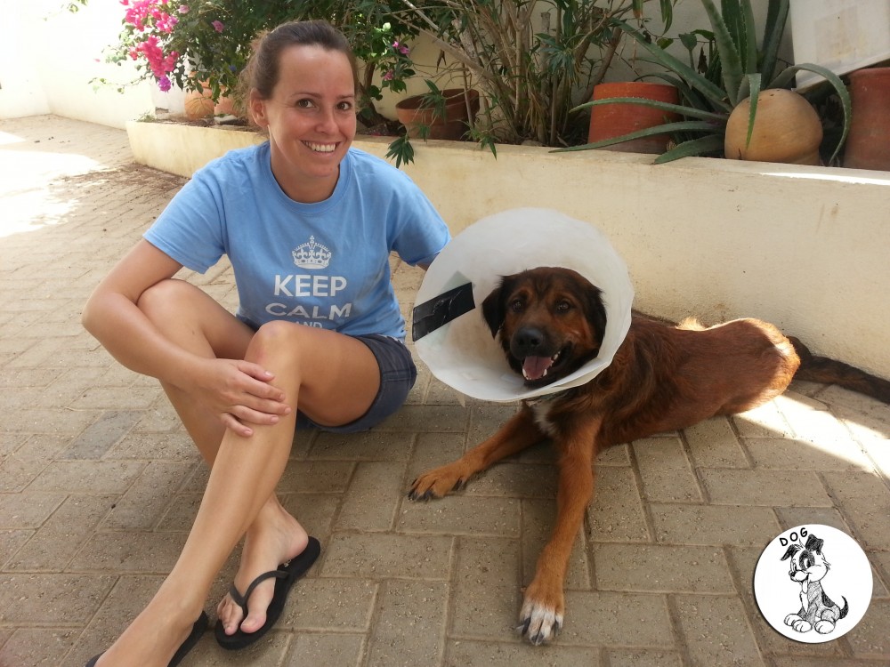 Deze week is Beer gecastreerd. Operatie ging prima en Beer had nergens last van. Helaas heeft hij na 3 dagen toch de hechtingen er hardhandig (of moet ik zeggen hardbekkig) eruitgetrokken en heeft hij nu een zwerend wondje. Dus toch nog een antibioticakuurtje en………. een kap op.     Gelukkig kwam Sarah (die hem gered heeft) gezellig langs en had hij weer even wat afleiding.