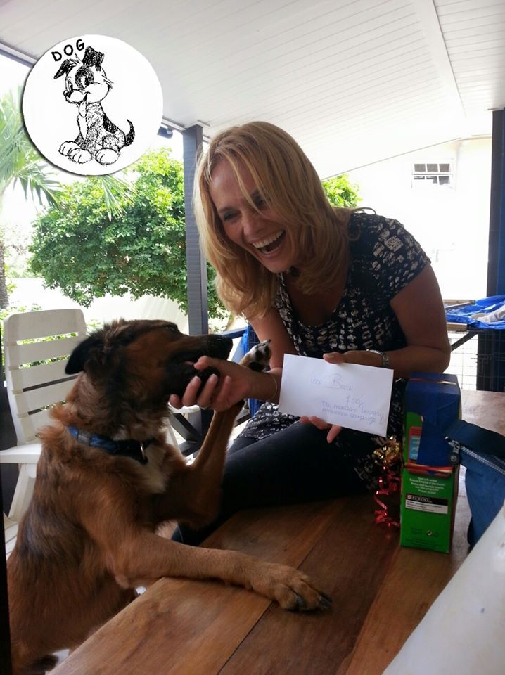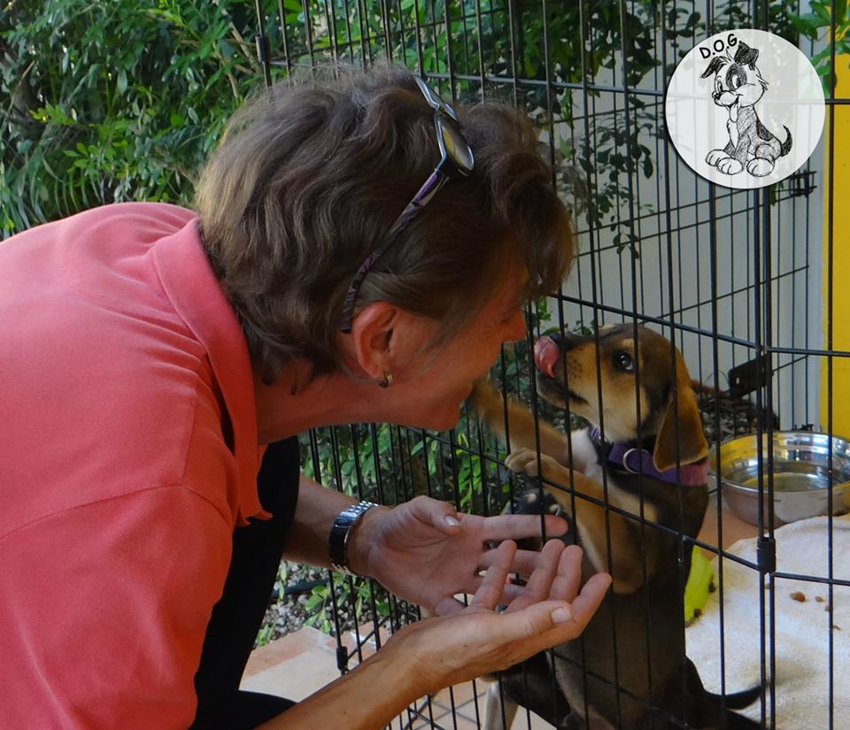Later die week kwam ook Claudia langs. Op haar verjaardag had zij donatie gevraagd voor DOG en dit bedrag is speciaal voor Beer, voor de medische behandeling van zijn kreupele pootje. Beer vond het helemaal geweldig maar ook van de andere hondjes kreeg Claudia een dikke knuffel.