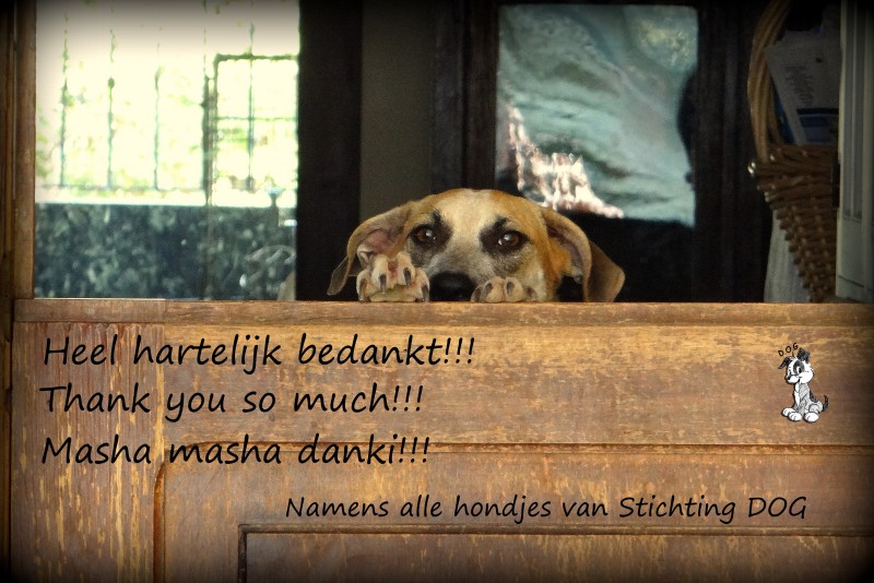 MET HEEL VEEL DANK AAN IEDEREEN DIE HET BESTAAN VAN STICHTING DOG MOGELIJK MAAKT!!!!!!!!!!! NAMENS DE LIEVERDS UIT HUIZE DOG