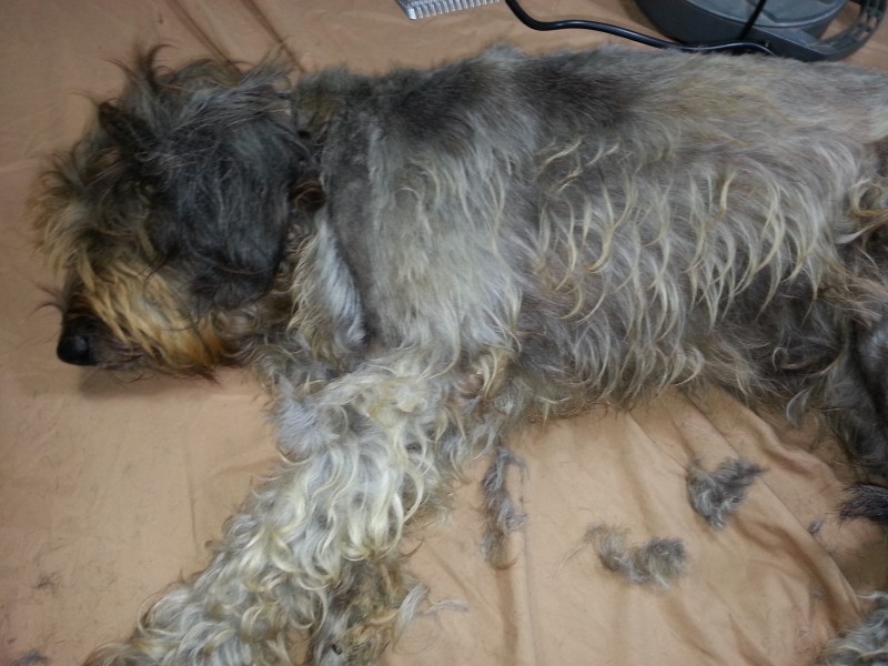 Ik kan haar nu wel op de tafel scheren, al blijft het niet haar favoriete bezigheid en blijven de poten moeizaam.