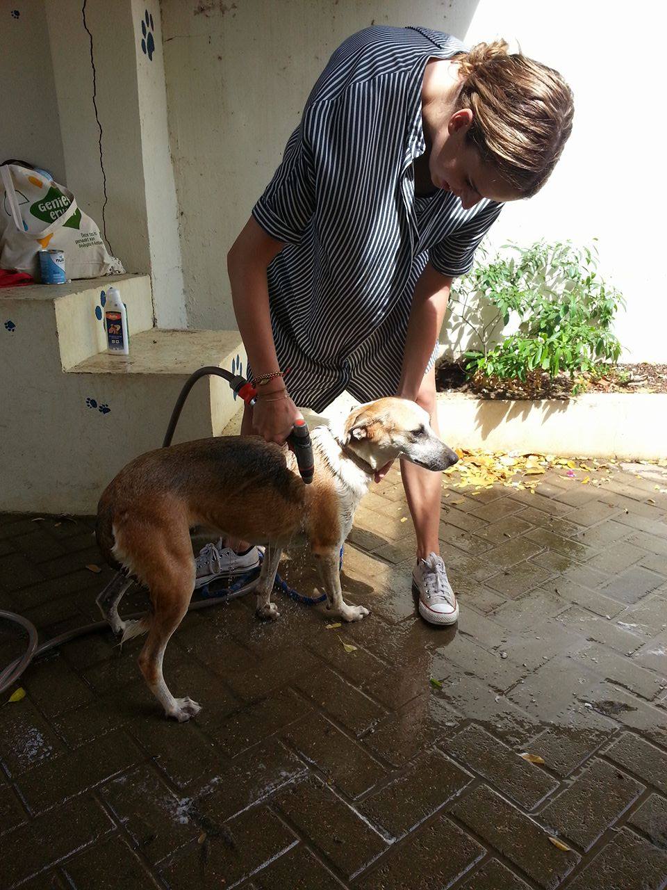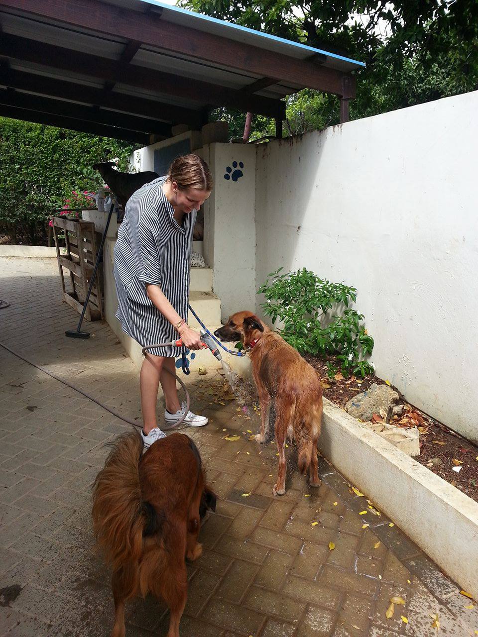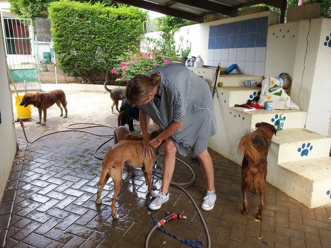 Vandaag kregen we bezoek en hulp van Johanneke Gehrels. Wow dat was een boel aandacht voor de hondjes. Geborsteld en gewassen en geaaid en geknuffeld. En Johanneke kwam niet met lege handen. Ze had allemaal spulletjes ingezameld en geld opgehaald. WOW, riemen, halsbanden, vlooienspul, shampoo…….. te veel om op te noemen. Dank je wel lieve Johanneke, ontzettend gezellig dat je kwam helpen. Fijne vakantie nog en blijf ons volgen op facebook of op de website.