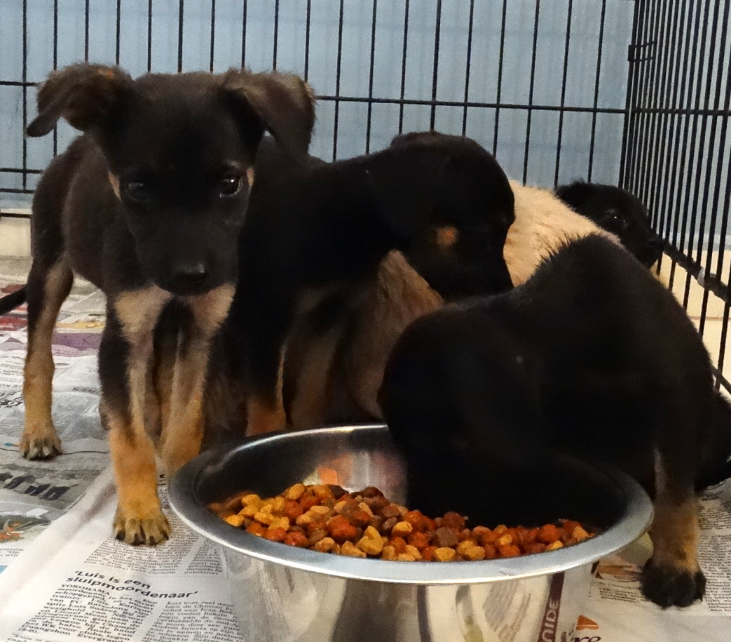 Allereerst de St Cruz pups. Gevonden door een toerist op St Cruz gebracht naar Bahia Apartments & Diving waar Ben was. Ben heeft ze meegenomen naar huis en Danielle (van  Hondenhotel Enjoy) en Ben fosteren nu de pups. Ze zijn naar de dierenarts geweest, ontwormt en gecontroleerd. Vanwege zware ondervoeding ( 5 weken oud) zijn ze zwak en zal het nog hard knokken worden voor ze. Gelukkig hebben ze aan Danielle een goede en duimen we allemaal dat ze straks als 5 vrolijke sterke puppy’s de wereld in gaan.  Dank je wel Danielle voor de goede zorgen!!