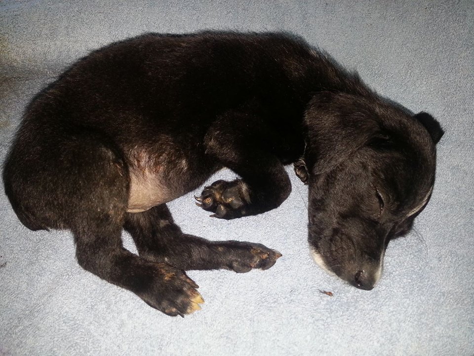 Zijn achterpootjes staan ook niet helemaal goed. Duimen dat dat goed komt.