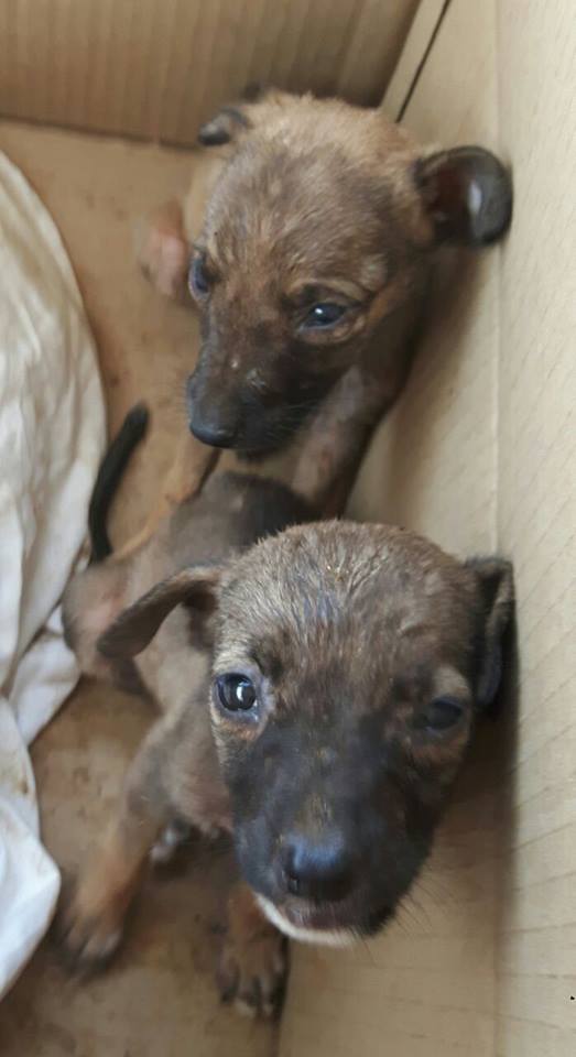 Op donderdag kwam de melding van de oliedrum-pups binnen bij Feed Friendsfoundation. Gelukkig had ik tijd om er heen te gaan. Dit laten we niet graag zien maar helaas komen we dit ook tegen. De melding was over 7 pups gedumpt in een oliedrum, 3 overleden. Na bellen heeft de man de pups in een doos gedaan en “weggedaan”. Hij wilde niks zeggen. Ik ben er heen gereden en vond een zeer argwanende man maar na wat praten en hem overtuigd te hebben dat ik de pups meewilde nemen en verzorgen, mocht ik ze zien. In een doos….. met plank erop……. en 5 gele kratjes zodat de plank er niet af kon. Opgesloten om in de hitte te sterven van honger en dorst. 1 was al overleden en de witte bijna. Ik heb niks gezegd , doos gepakt, meneer bedankt en weggegaan. Dyveke van FFF zat al bij de dierenarts klaar. De witte hebben we meteen uit zijn lijden verlost en de 2 andere heren krijgen een kans bij Mascha.