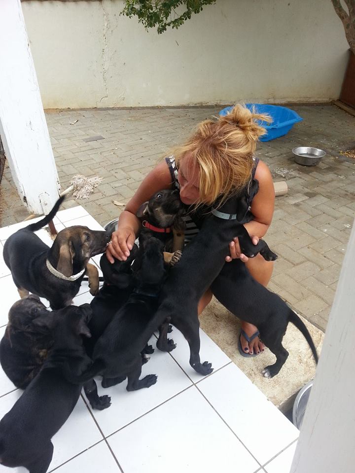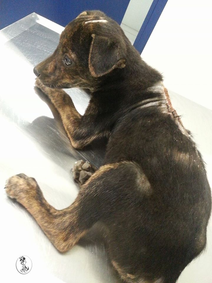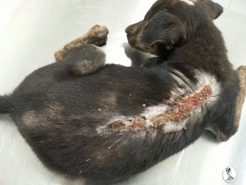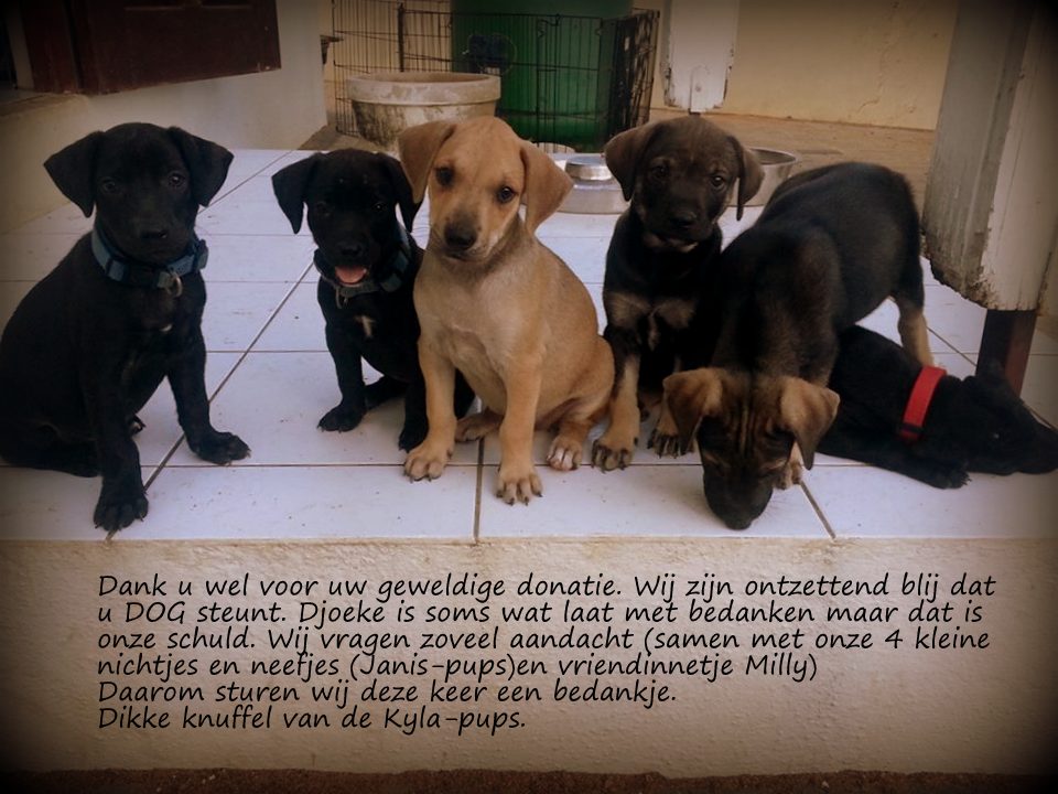 Ook hebben we een nieuwkomer: Milly. Een kleine meid, in de tuin van iemand gedumpt met een grote schaafwond over haar ruggetje. Gelukkig is Milly een vrolijke meid en eet en drinkt goed. Maar spelen met de andere pups is nog lastig want die springen boven op haar en met die wond is dat niet echt lekker.