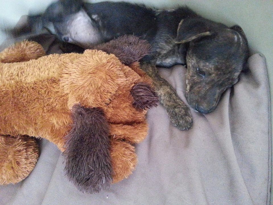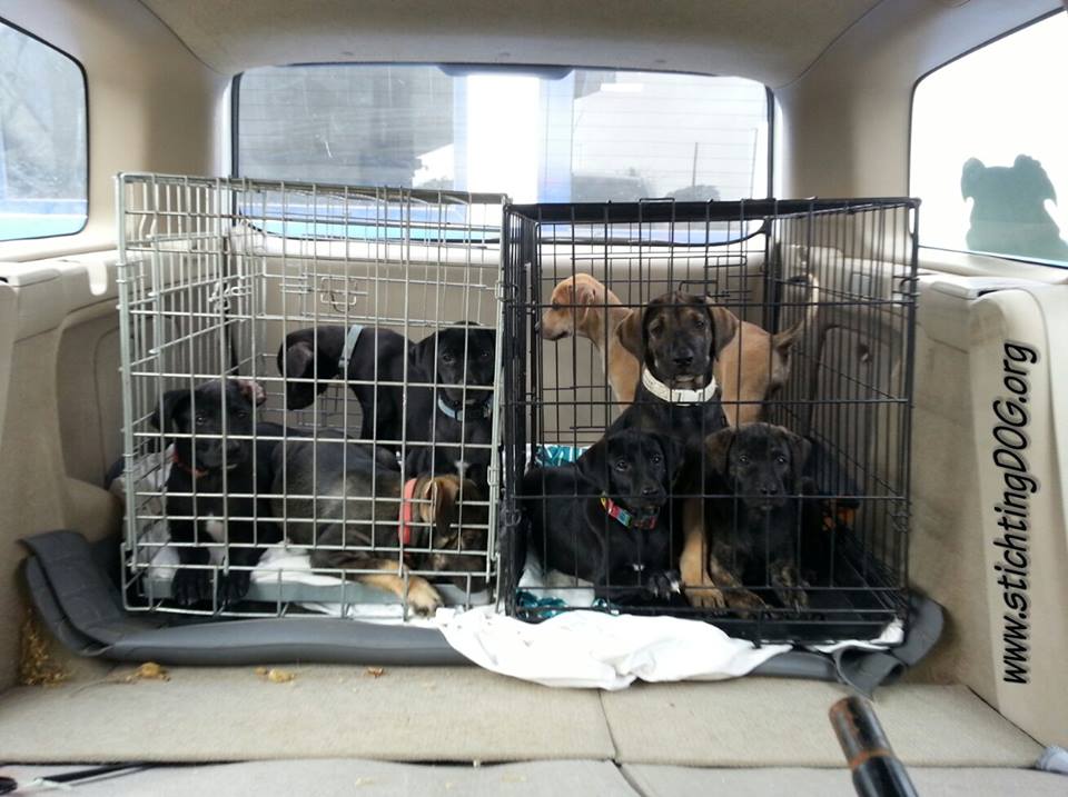 Onderweg naar hun foster huisje moest de zwakste overgeven. De andere pup wist niet hoe snel hij dat op moest eten. Voor het eerst liggen ze op een schone, zachte deken. Ze waren doodmoe van het moeten vechten om eten en water. Ze hebben een lange weg te gaan maar het gaat fantastisch met ze , dankzij de super goede zorgen van Masha.