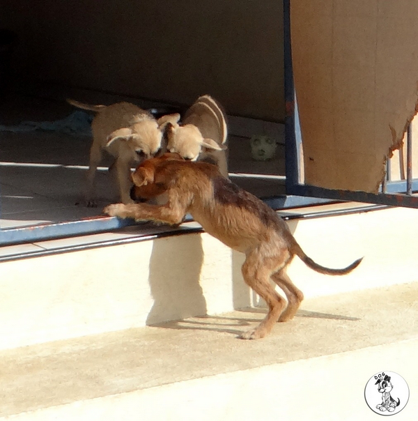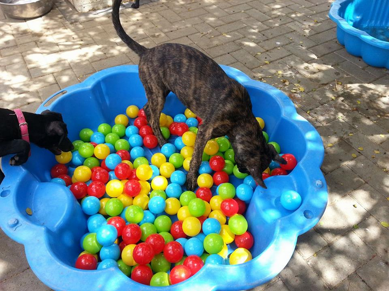 Puppy Paradise wordt steeds mooier. Het zwembad is van de week volop gebruikt. (helaas als ik er aan kom rennen ze allemaal naar het hek, dus vandaar deze paparazzi-film.)