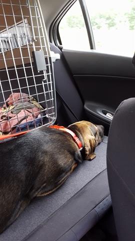 Maandag eerst de reispapieren gehaald, de hele week nog bench training en donderdag was de grote dag. De benches gingen in de pickup bij Minke, de hondjes bij Esmee en mij in de auto. Lycia en Fien en Faan zouden de hondjes begeleiden naar NL.