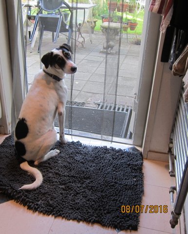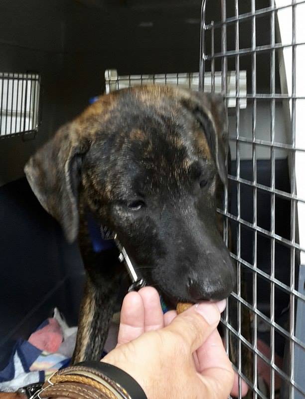 Deze week ook een spannende dag voor Janis. Zij werd gesteriliseerd. Maar ondanks haar angst heeft ze zich voorbeeldig gedragen. Ze is een sterke meid. Janis begint langzaam wat vertrouwen te krijgen. Zeker als de pups op het pad spelen, speelt ze graag mee , maar dan moet ik wel ver weg blijven 🙁