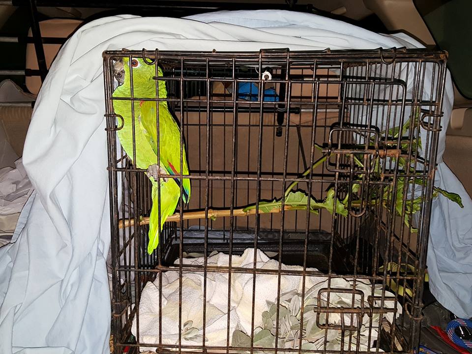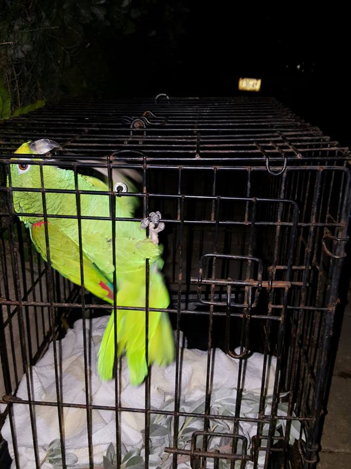Vrijdagavond een hele andere rescue gedaan dan “normaal”. Iemand had een papegaai in de struiken en kreeg hem er niet uit. Ze was bang dat de hond hem zou pakken. Helaas reageerde er niemand om te helpen dus ben ik met een kleine draadkooi erheen gegaan. Dat was nog best even spannend want geen idee hoe je zo’n vogel vangt en ik weet dat ze met hun snavel goed hard kunnen bijten. Maar uiteindelijk kregen we hem in de bench. Ik heb hem meegenomen en gelukkig kon Dr Doest hem ophalen diezelfde avond. Zij heeft hem bekeken en hij blijkt nog jong te zijn en hij was helemaal okee. De eigenaar is gevonden dus hij gaat naar huis (een betere plek dat in de bek van een hond pffff) Dank Odette Doest voor het ophalen.