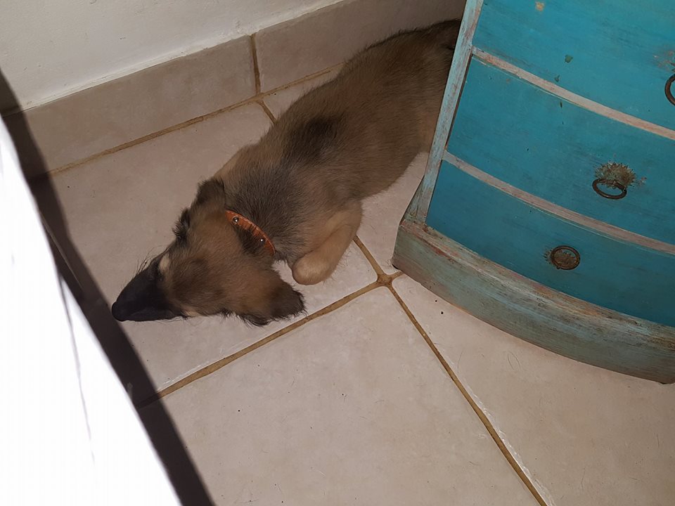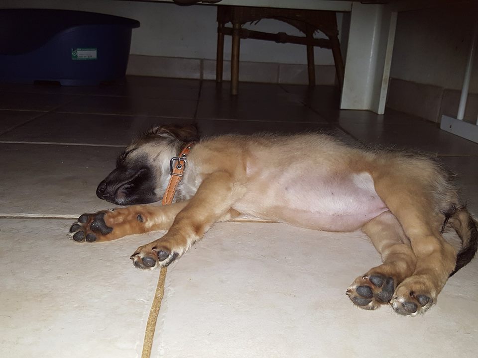 Zoals je op FB kon zien, gaat het met Maddy goed. Ze houdt zich goed staande tussen de “grote” honden. Tico is haar grote vriend en van Dana en fam heeft ze een mooie bench gekregen waar ze nog even in kan groeien. Op bed slapen is nog wat link, want ze valt er zo af. Maar op de tegels is ook lekker koel.