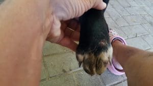 Voor volgende maand staat Jo op de lijst voor een operatie. Een poot amputatie. Helaas heeft de eigenaar zich niet gemeld. Jo wordt nu een paar weken behandeld voor karpattenziekte en daarna is de operatie. De poot sleept vreselijk over de grond en is 1 grote wond. Ik doe er steeds een schoentje om maar die blijft niet altijd zitten……