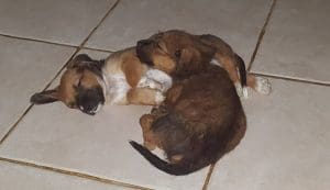 De kans dat de andere 3 ook parvo zullen krijgen is groot, dus mijn keus was om ze “preventief” te behandelen. Ze hebben 3 dagen behandeling gehad en tot nu toe gaat het goed. Op de kip met rijst en duimen dat ze okee blijven.