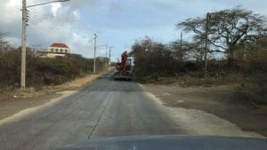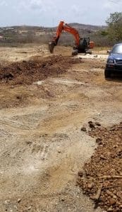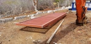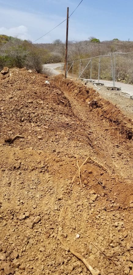 De hekken werden gebracht door Kooyman, en de graver ging die kant op. Gevolgd door Wout Tieleman van het Kunuku Aqua resort, die het project begeleidt en bouwt.