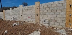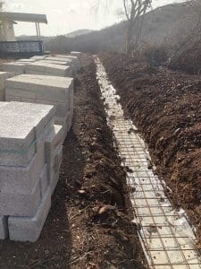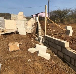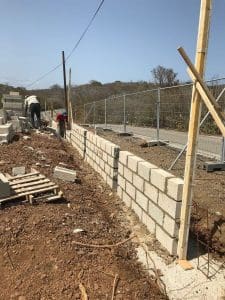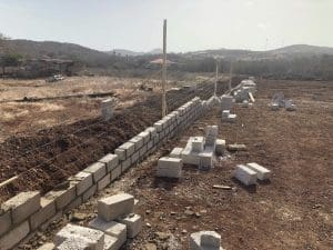 Eerst terrein bijwerken en de geulen graven voor de omheining en de muur voor.
