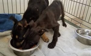 Alvin en Alice waren 2 grotere pups die nog bij mw Boy zaten maar niet te vangen waren. Toch zijn ze beide uitgehongerd de bench in gegaan en heeft Mw Boy ze kunnen vangen. Maar ze waren ontzettend schuw, bang en angstbijters. Dus het was wat om die 2 mee te krijgen