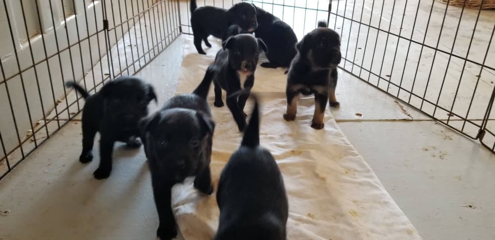 Wilma werd zwanger gespot bij het voetbalterrein van Willemstad. De bedoeling was haar te vangen en zo snel mogelijk te steriliseren. Helaas ging het vangen niet makkelijk en was ze al bevallen voor we haar te pakken hadden. Bianca heeft haar nestje een paar dagen later gevonden en het is toen gelukt om ze mee te nemen en naar de Sanctuary te brengen. Mama Wilma was erg schuw en we mochten in het begin niet bij haar pups komen. Wilma was brandmager en toen de pups 6 weken waren zijn we Wilma doxy gaan geven. Dat betekende dat de pups niet meer bij haar mochten drinken en zelf verder moesten. Dat bleek een super beslissing te zijn. Wilma knapte zienderoog op en de pups werden steeds socialer. Ze werden de ‘Flinstones family’. Wilma aan het hoofd met Flin (Fred) en Barney met Betty. Pebbles en Bambam, Slate en Rubble.