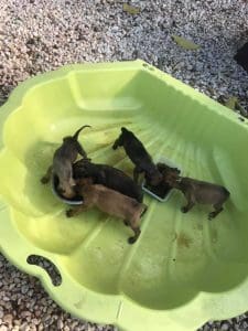 Kelly vond een nestje van 5 hele kleine hummeltjes bij Bullenbaai. Ze nam ze meteen mee en vroeg om hulp. Ze wilde ze zelf fosteren dus dat was helemaal geweldig. Bij haar thuis heeft ze met bierkratjes een puppyren gemaakt en daar groeiden de kleintjes helemaal super met elkaar op.