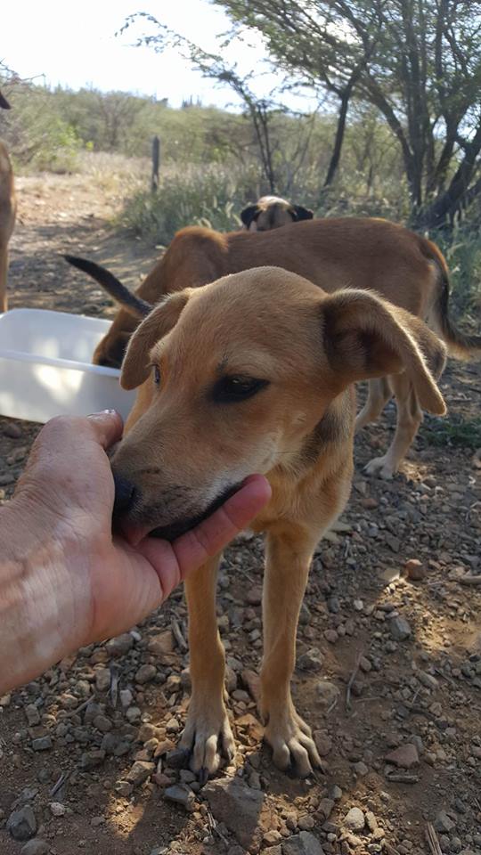 Benjamin komt uit de roedel honden op de Kaminda Jose Antonio. Een roedel die door de eigenaar niet/nauwelijks verzorgd werd, steeds puppy’s kregen die vervolgens weer dood gereden werden op de drukke straat.  Diny is al sinds augustus de hondjes aan het voeren
