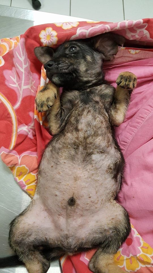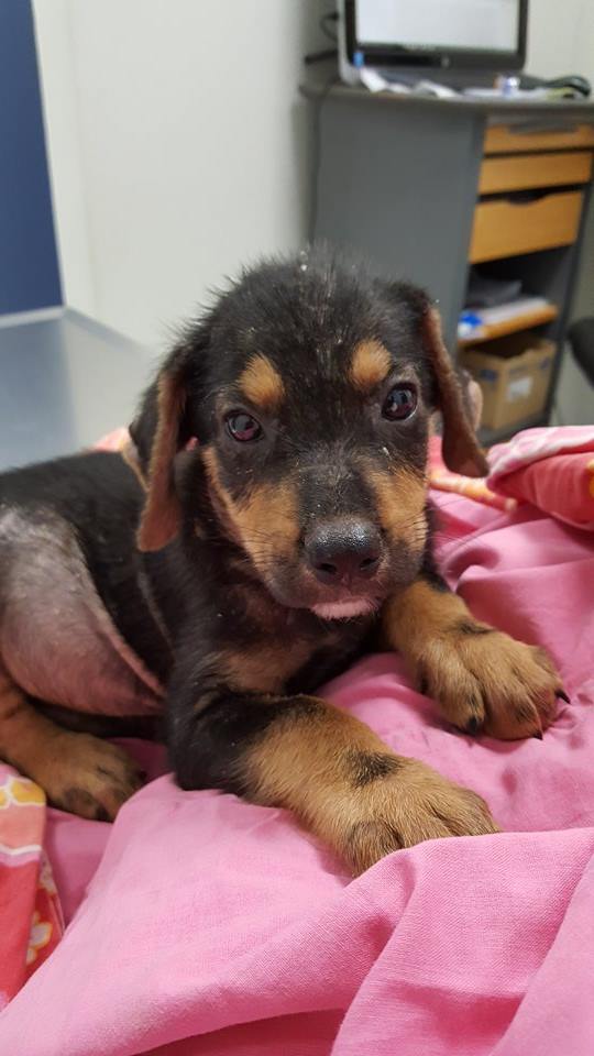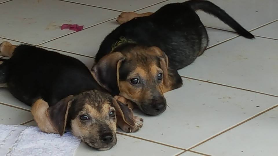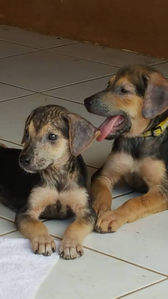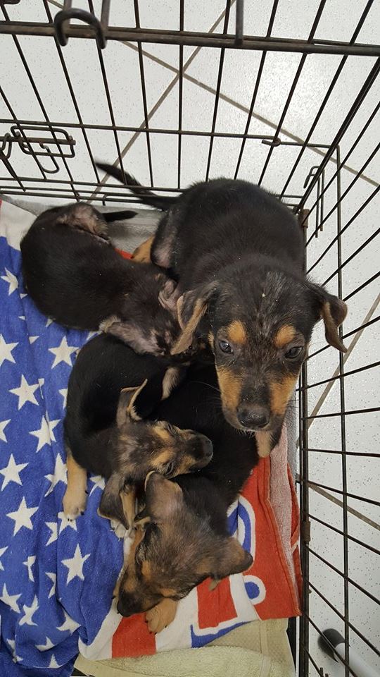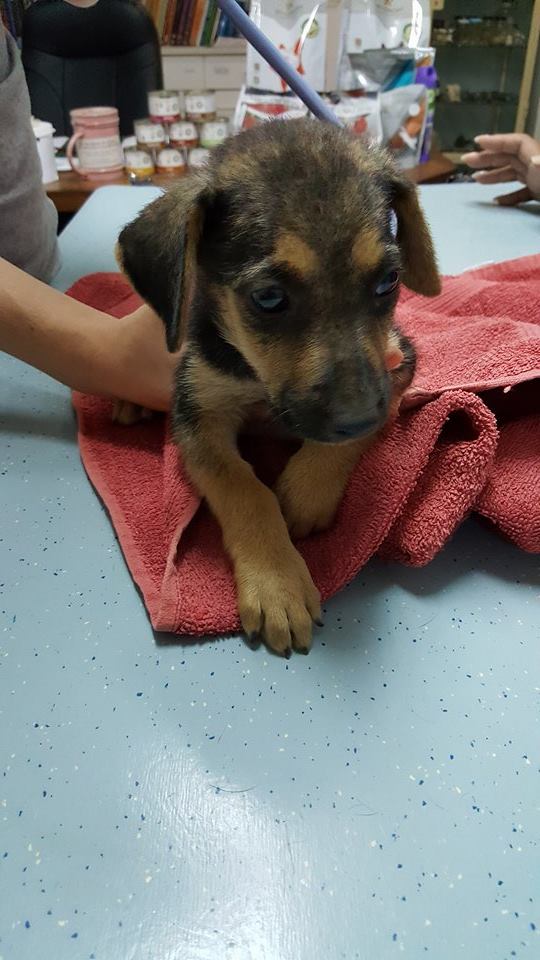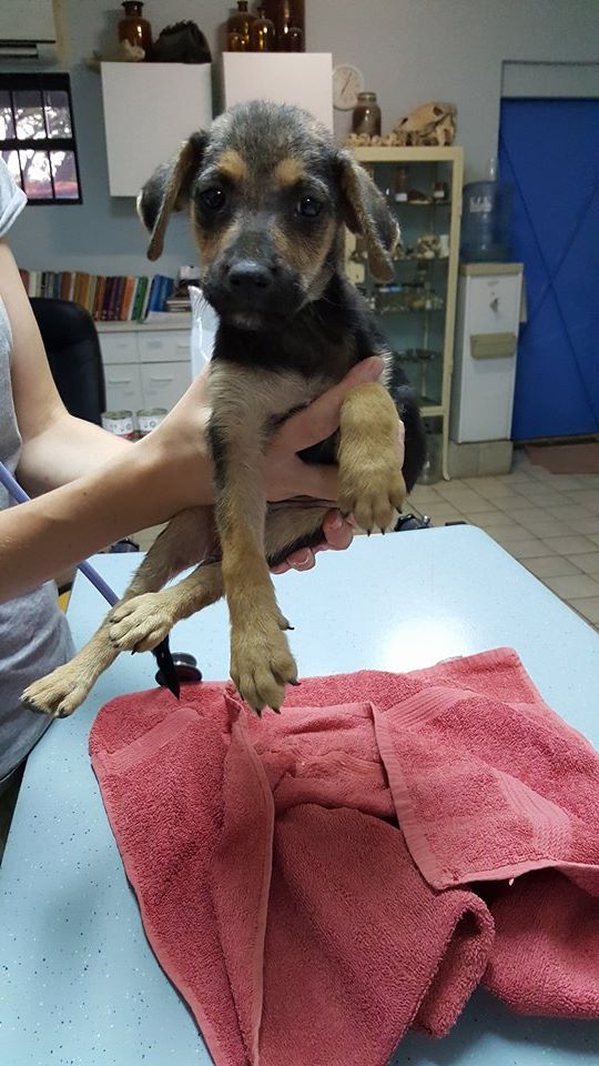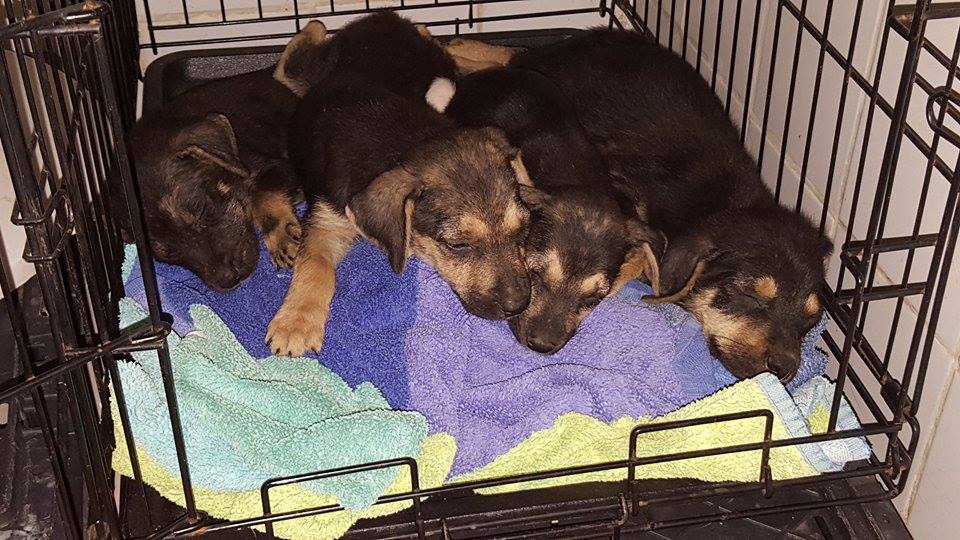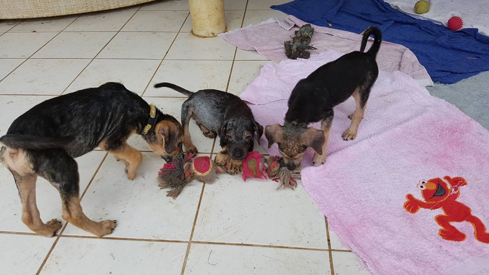 De ABBA pups zijn in de zomer van 2017 gevonden door Thea van ‘Alle Hadoc’. Opzoek naar katten zag zij 1 klein pupje op de straat zitten en 1 wegrennen. Ik ben komen helpen zoeken en toen bleken het er 4 te zijn. Ze zagen er niet best uit dus hebben we ze meegenomen naar de dierenarts voor controle. Veel schurft en verder ontvlooien, ontwormen, en aansterken.