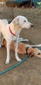 Gelukkig kwam Thea en die heeft ze beide naar de dierenarts gebracht voor castratie en sterilisatie. Daarna zijn ze naar huize DOG gekomen. Eerst 5 dagen in een kamer totdat de loopse geur wat weg was. Toen een paar dagen in Puppy Paradise bij de grotere pups en nu na 2 dagen langzaam wennen bij de volwassen honden.