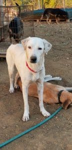 Clyde is een lieve mooie witte hond die het heerlijk vind om rond te wandelen. Bonny heeft een manke achterpoot en is heel onderdanig, wil het liefst bij je op schoot.