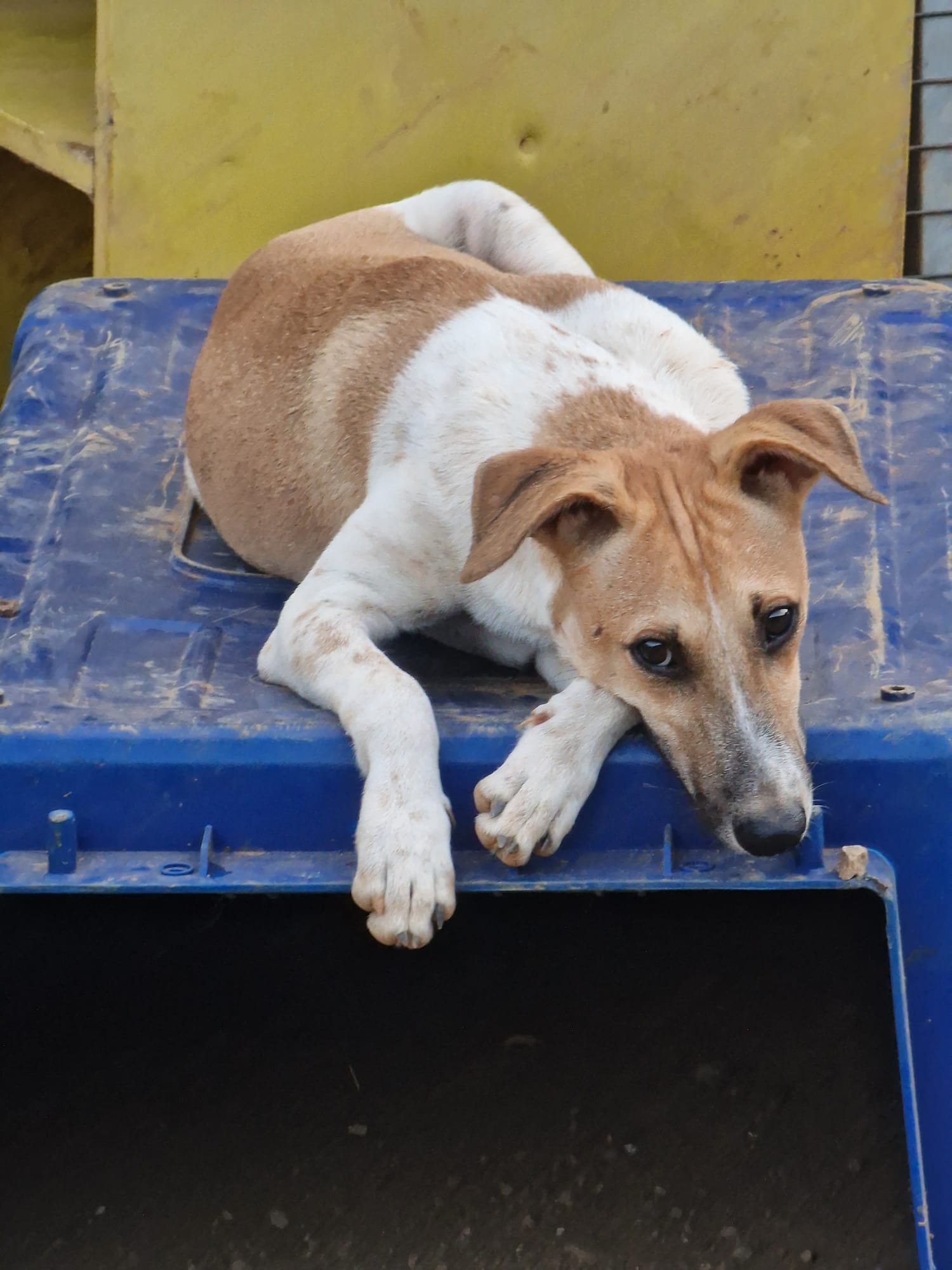 Het lijkt wel een ‘vastgelopen LP plaat… “gedumpt voor de deur”, maar helaas is onze vaste ‘dumper’ weer langs geweest. Deze meneer redt de pups (en soms volwassen honden) uit zijn buurt, loopt er vervolgens een heel eind mee naar ons toe en laat ze in doosje achter, propt ze door of laat ze over het hek vallen. Deze meneer heeft een groot hart voor de honden en bedoelt het goed, maar please STOP. We kunnen de lieverds ook nergens meer kwijt en het aantal adopties is niet in vergelijking met de vaart waarmee we de pups binnen krijgen.