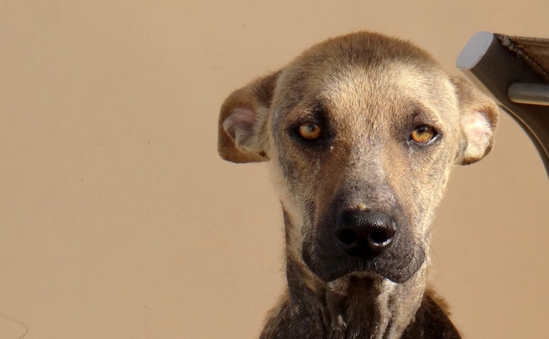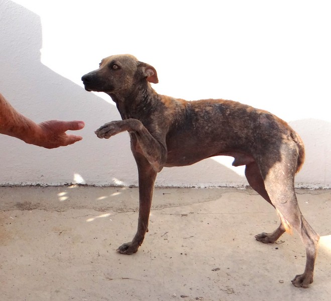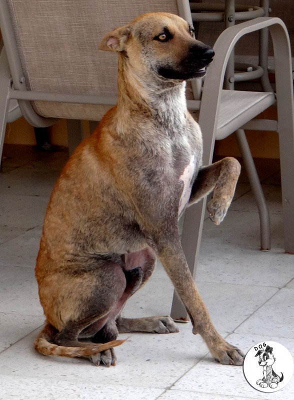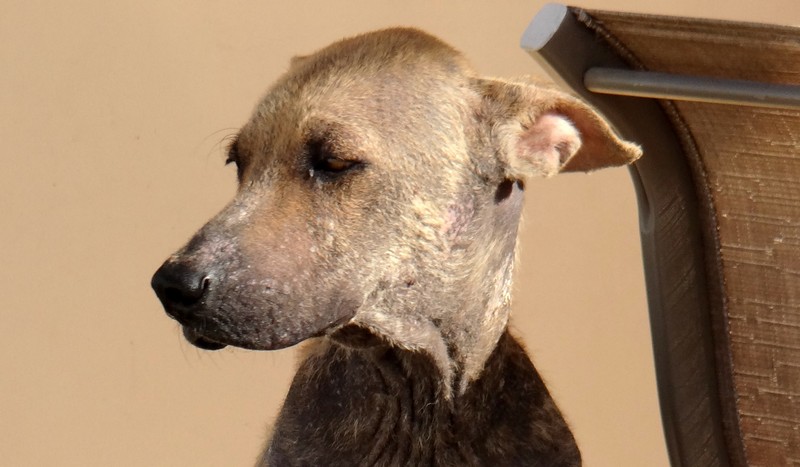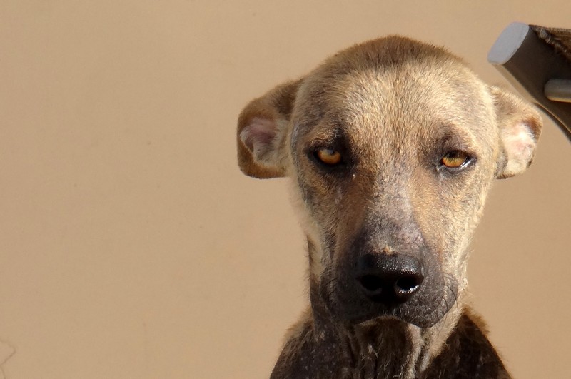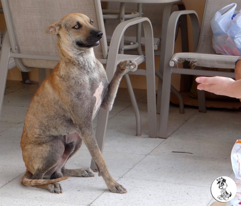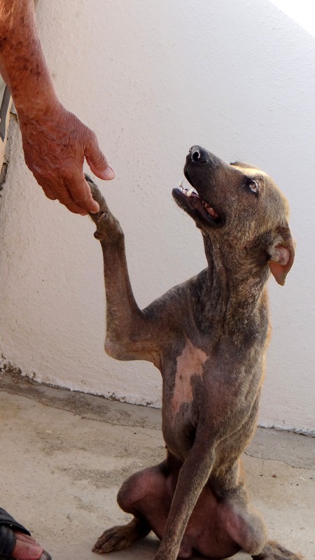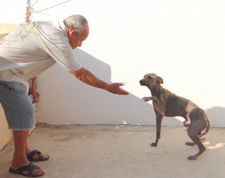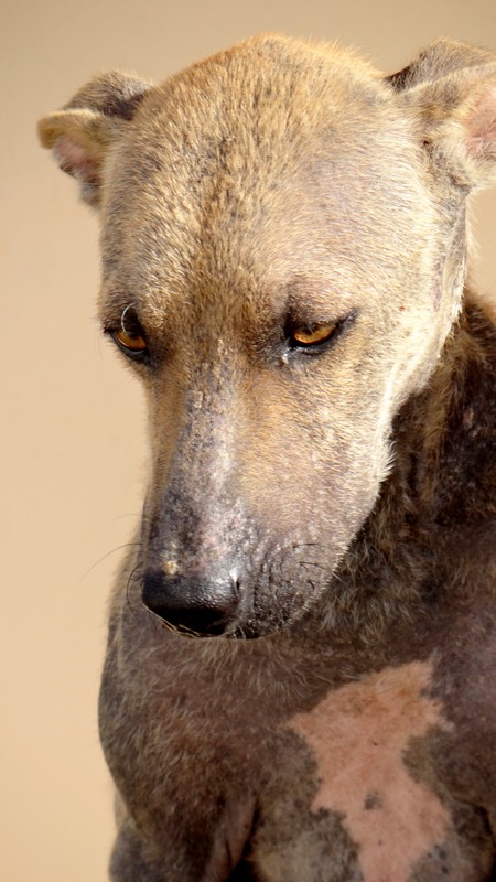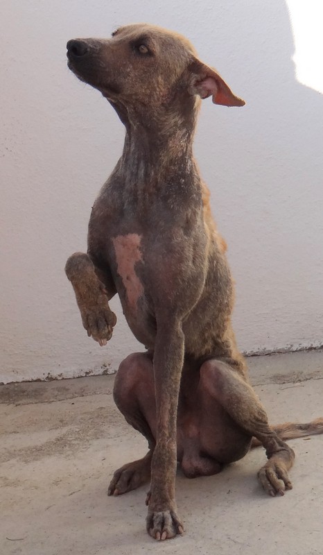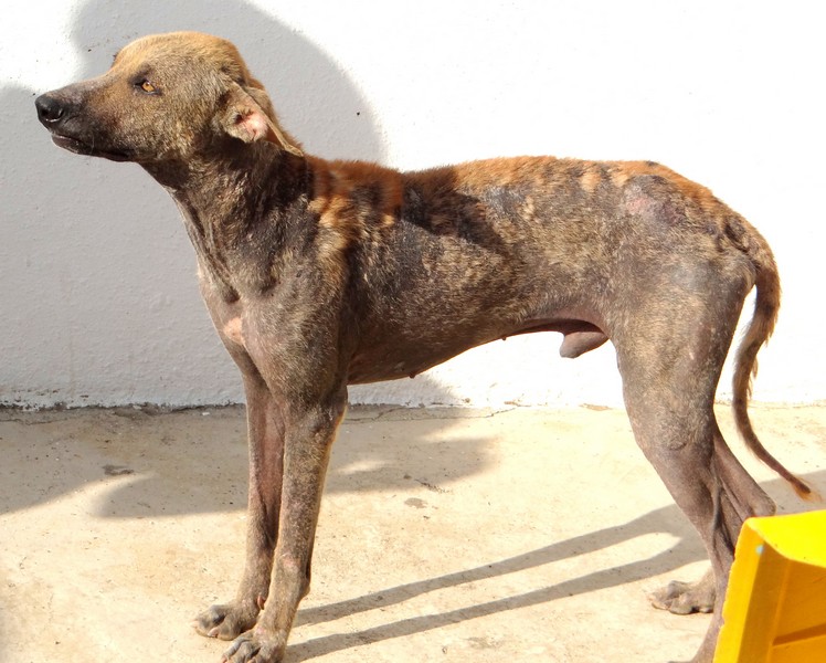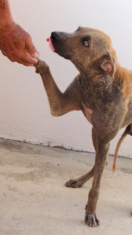 En dan krijg je een melding dat iemand echt niet meer voor zijn hondje kan zorgen. En als je gaat kijken zie je dit ………… en een zeer geëmotioneerde man die gek op zijn hondje is, maar niet meer weet wat hij moet doen en geen geld heeft. Hij had eerder hulp gevraagd en gekregen maar die kwamen ineens niet meer en nu kon hij dit niet meer aanzien en vroeg of wij Brownie alsjeblieft wilden helpen. Hij kon het niet meer aan zien. Brownie is gek op zijn baasje dus die haal je niet zomaar weg. Nu is Brownie een DOG hondje maar blijft bij zijn baasje. Mirjan Seppenwoolde kon met hem naar onze lieve zorgzame dierenarts en nu krijgt Brownie medicijnen. Ook heeft Brownie meteen al super lieve afstandsbaasjes die elke maand sponsoren voor voer en heartgard. Dank je wel Eric en Lidy Heilbron. Als Brownie’s huid helemaal ok is, en hij is weer wat dikker dan gaan we hem enten en castreren.