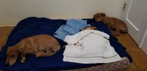 Tegenover de grotten van Hato werden de 4 muziekinsturmentjes gevonden, Banjo en Bongo (reutjes) Fiddle en Cello (teefjes). Vier vrolijke, gezellige dikkerds. Maar toen sloeg het noodlot toe… parvo. Een vreselijk gevecht wat Banjo en Bongo niet overleefd hebben, R.I.P.lieve kleine mannetjes, jullie waren een super vrolijk stel.