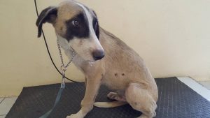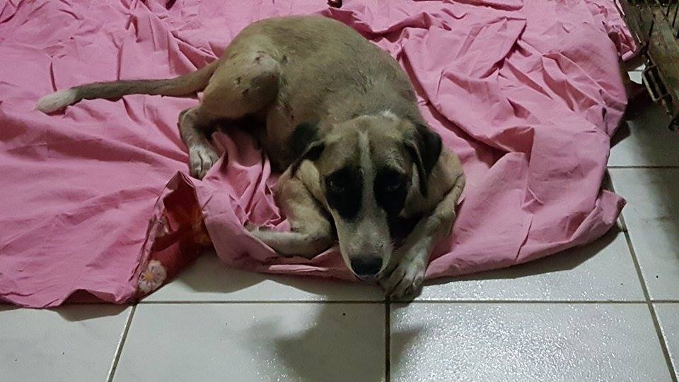 HELP!! dit hondje loopt bij het Marriot Hotel(nov 2017), allemaal gaten (bijtwonden) en security wil hem weghebben. De security had ook andere plannen met hem. Met ijzerdraad zijn voorpoten vastbinden en zijn achterpoten, en ijzerdraad om zijn kop. Hij heeft gegild, en Kurt hoorde dat…………. Kurt is zijn redding geweest.