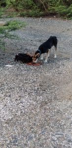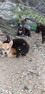 Cora en de Q-pups werden in oktober 2019 gezien door toeristen. Ik ben de pups gaan halen, maar helaas bleken die doodziek te zijn en moesten we ze laten gaan. Moeder Cora heb ik nog 3 weken gevoerd op de plek waar ze sliep. Ik kon haar niet eerder meenemen omdat ik niet zeker was of zij dezelfde besmettelijke ziekte had als de pups. Na 3 weken was ze nog gezond. Maar de dag dat ik haar zou ophalen lag ze langs de kant van de weg. Aangereden en overleden… Wat een vreselijk drama voor deze prachtige moeder en haar gezinnetje.