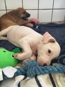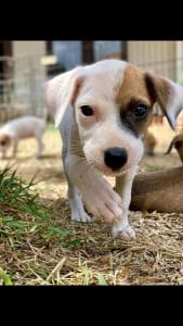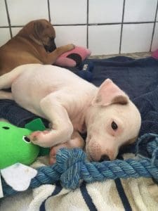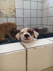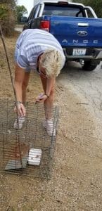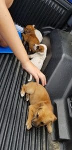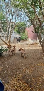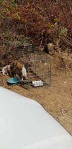 Wouter zag in juni 2019 puppy’s lopen bij Bullenbaai. De moeder was erbij maar ze lagen vlak langs de weg en daar was het niet veilig. We zijn ze gaan vangen maar dat bleek niet makkelijk. De eerste 2 lukten maar de volgende dag moesten we weer terug.Samen met Sandra van Kunuku Resort en Wouter de vangkooi uitegezet. Uiteindelijk hebben we 7 gevangen, maar mama en 1 pup waren ons te slim af.
