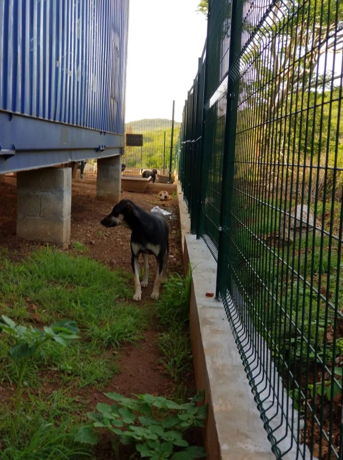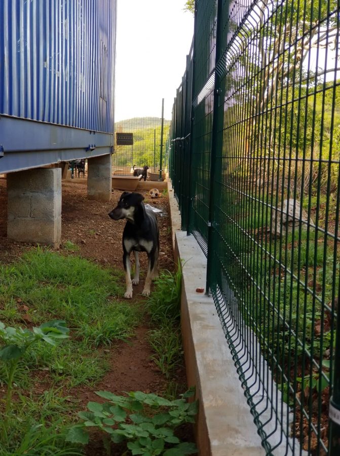 Op een avond in december, hoorde ik om 9 uur ineens geblaf bij de nieuwe container. Er was nog geen dak en geen verlichting. Met het dak zouden ze de volgende dag beginnen. Ik ben met een zaklamp gaan kijken en daar liep een zwart hondje. Er zaten verder geen hondjes in dat deel omdat de aannemer er de volgende dag aan de slag moest.
