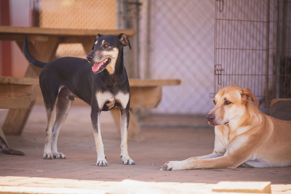 Hij is aaibaar, komt lekker knuffelen en gaat helemaal prima met de andere hondjes. Groot raadsel hoe hij in dat vak gekomen is??? Over de muur gedumpt????