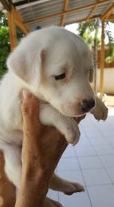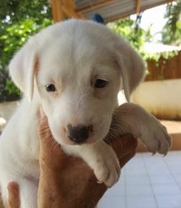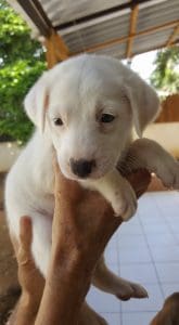 Via een FB vriend kreeg ik te horen dat bij een huis 2 moederhonden puppy’s hadden. De eigenaar wilde ze niet want hij heeft genoeg honden. Ik ben gaan kijken en vond 2 slecht uitziende moederhonden. de ene had 4 pups (3 witte en 1 zwarte) en de ander had 3 pups (2 bruine en 1 witte). De eigenaar wilde de kleine witte houden maar de rest mocht weg. De andere honden zagen er goed uit. Ik heb alle honden ontwormt en nexgard gegeven. de moeders mochten gesteriliseerd maar hadden helaas hondenziekte dus de operatie ging niet door. De eigenaar zou naar de dierenarts gaan voor verdere behandeling en daarna de honden steriliseren.