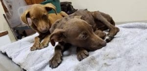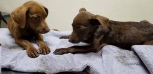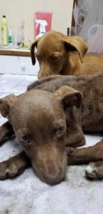 Patrick en Esmee waren magertjes en natuurlijk vlooien, teken en wormen. Maar verder 2 super leuke hondjes. En natuurlijk namen we ze mee naar de sanctuary.