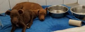 Toen Danielle en ik bij de dierenarts klaar waren, stopte er een auto met 2 lieve toeristen die vertleden dat ze 2 hondjes op weg naar Santa Martha gevonden hadden. Ze wisten niet wat ze moesten doen maar hebben ze wel meegenomen. Ze zagen dat in Tera Cora een dierenarts zat en zijn daar heen gereden.
