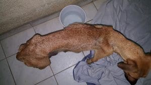 ’s Middags zijn er foto’s gemaakt en bleek ze bekken en heup gebroken te hebben. Ze ging mee naar huize DOG waar ze mocht aansterken want ze had ook karpattenziekte.