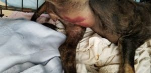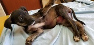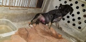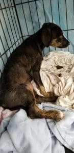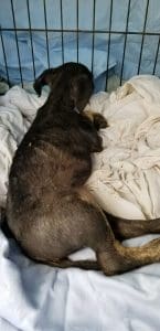 Nu zat er nog 1 in de knoek en die was niet te vangen. Op een middag nog paar uur mee bezig geweest maar geen succes. Helaas werden we de volgende dag gebeld dat Mw Anna de laatste pup had maar hij was ziek zei ze. Ik ben haar meteen gaan halen, maar ze bleek aan gereden. Foto wees uit dat haar poot en heupen kapot waren en haar buikwand. We hebben afscheid van haar genomen, RIP kleine Ferdorie.