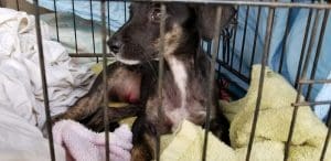 Al langere tijd zijn we bezig geweest met het vangen van hondjes bij Mw Anna. Helaas zijn de hondjes zo schuw, dat vangen niet lukte. Fenny was al een tijdje bezig met voeren en ontdekte dat er weer een nestje was met 8 pups. Zij bleef voeren en proberen het vertrouwen te winnen en heeft ze toen om de beurt gevangen.