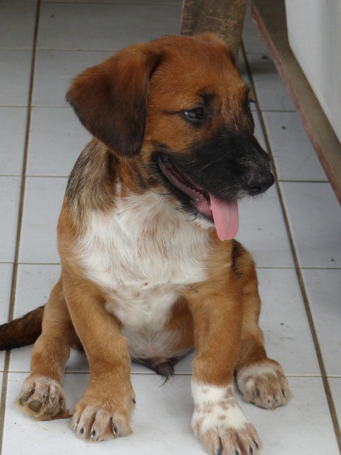 Via een FB vriend kreeg ik te horen dat bij een huis 2 moederhonden puppy’s hadden. De eigenaar wilde ze niet want hij heeft genoeg honden. Ik ben gaan kijken en vond 2 slecht uitziende moederhonden. De ene had 4 pups (3 witte en 1 zwarte) en de ander had 3 pups (2 bruine en 1 witte). De eigenaar wilde de kleine witte houden maar de rest mocht weg. De andere honden zagen er goed uit. Ik heb alle honden ontwormt en nexgard gegeven. de moeders mochten gesteriliseerd maar hadden helaas hondenziekte dus de operatie ging niet door. De eigenaar zou naar de dierenarts gaan voor verdere behandeling en daarna de honden steriliseren.