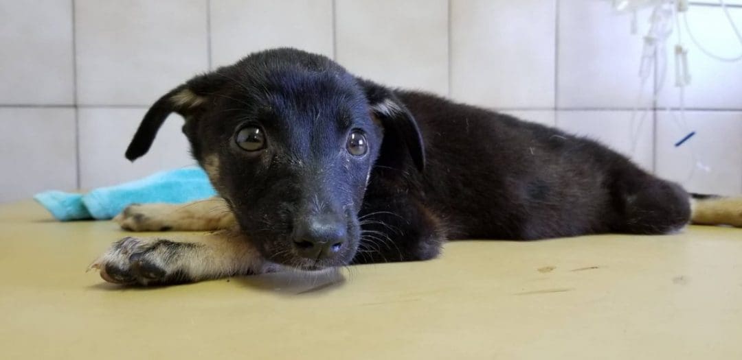 Ariadne vond ze en maakte van een doos wat beschutting. Maar het weer zag er slecht uit. Heftige regenbuien waren op komst dus moesten ze daar echt weg. Ariadne heeft toen Holly gevangen met de vangkooi en samen met de kleintjes naar DOG gebracht.