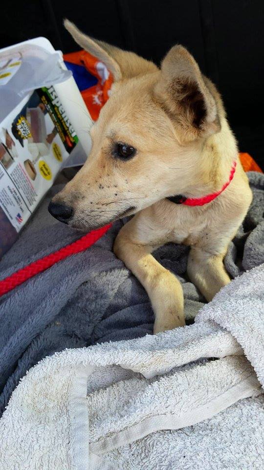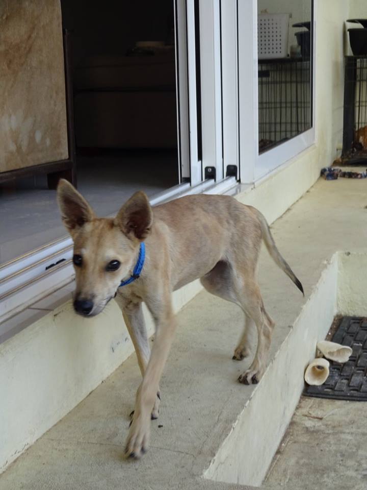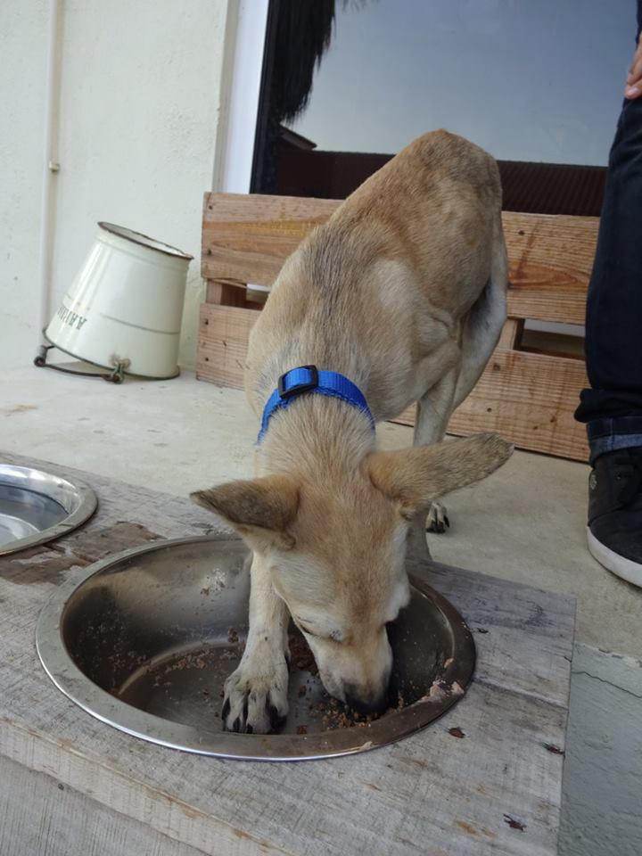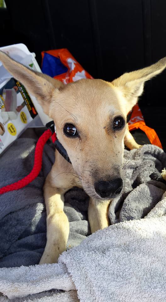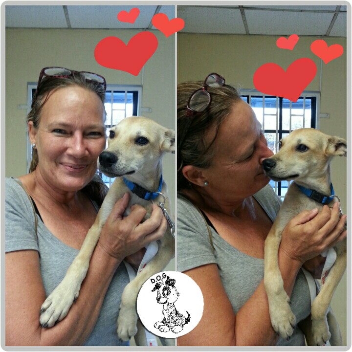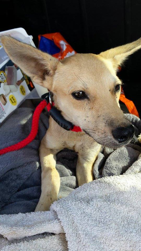 Stel je voor: Je loopt tussen de auto’s, zoekend naar eten en water, met gevaar voor eigen leven, vol vlooien en teken…………..  en dan ineens…………………………………….. is daar de auto van Mirjan. Die stopt, lokt je naar de kant, geeft je wat lekkers, neemt je mee naar de dierenarts waar alle vieze diertjes van de verdwijnen, je pillen krijgt voor ontworming en dan wordt je gebracht naar een foster waar je grote bak eten krijgt en water en een heleboel aaien.