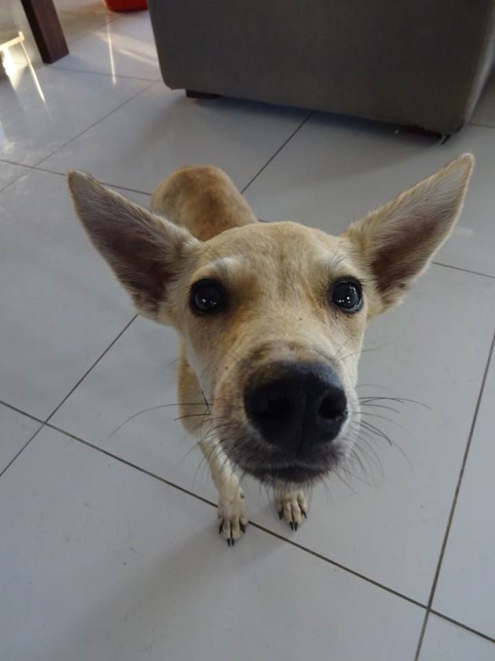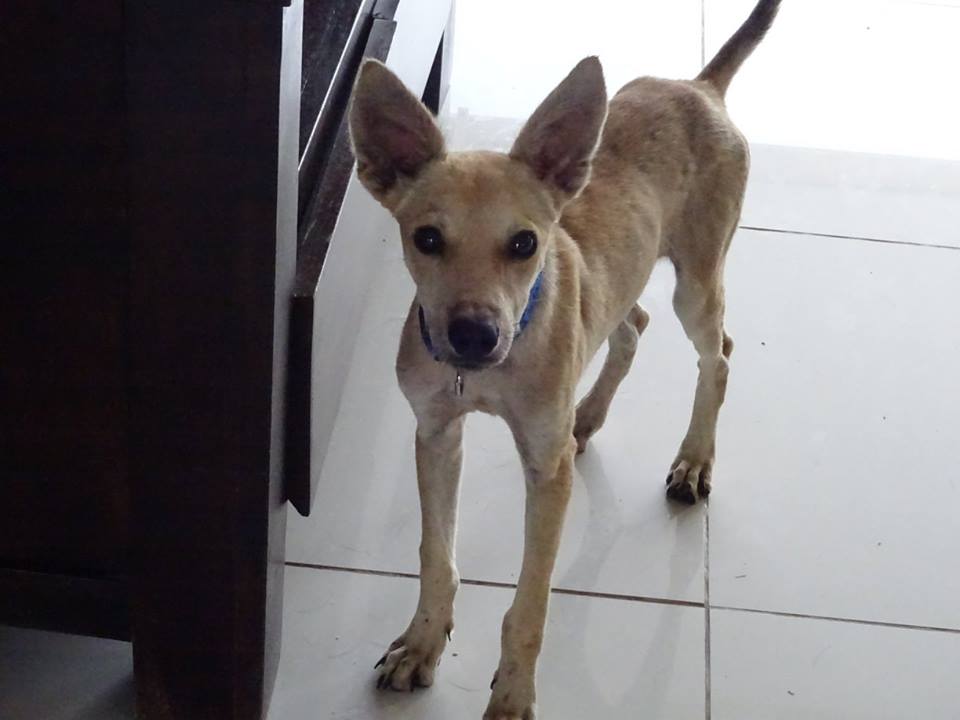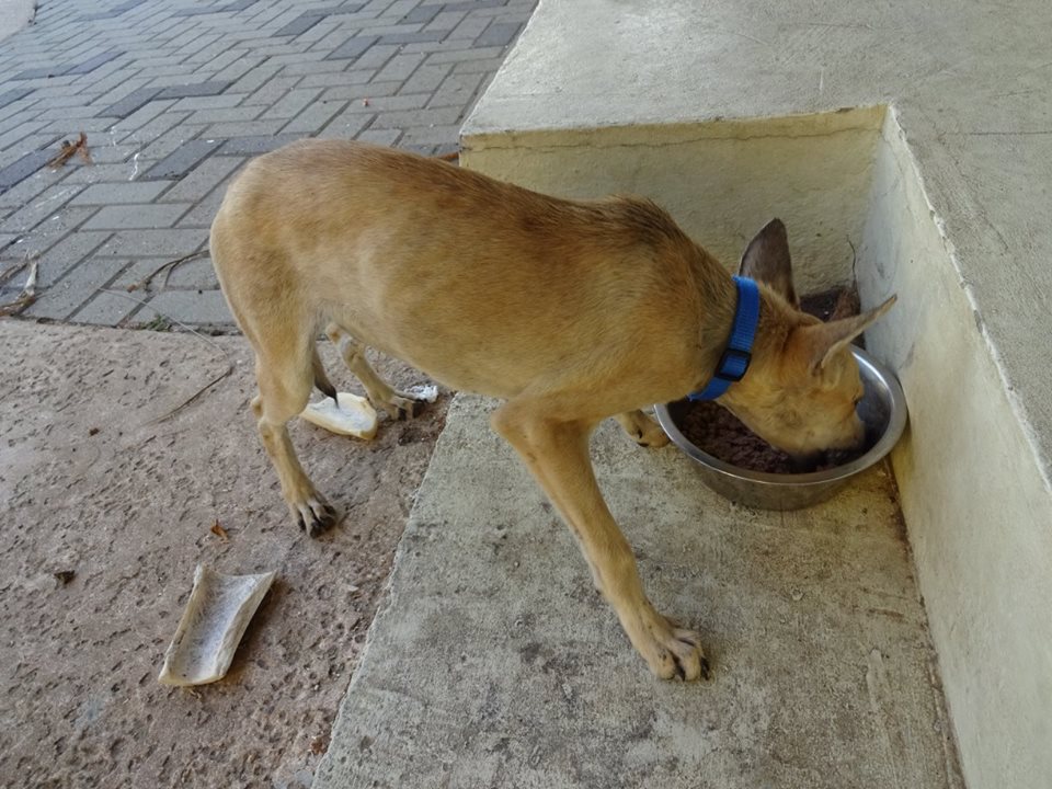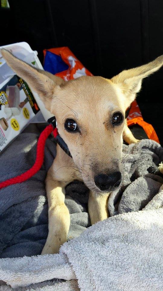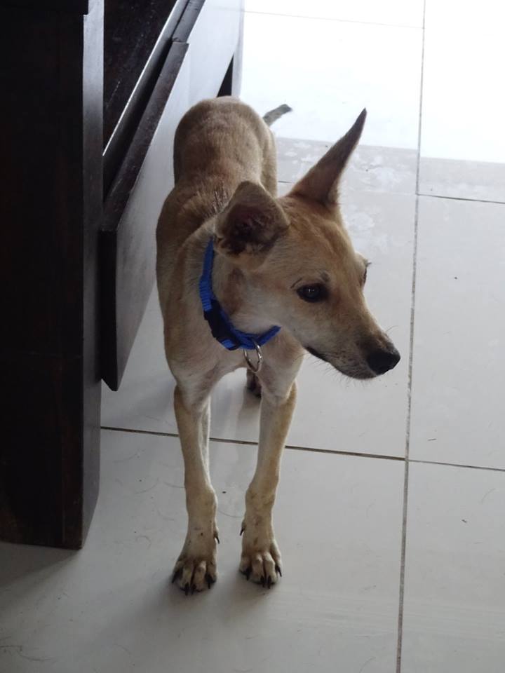 Stel je voor: Je loopt tussen de auto’s, zoekend naar eten en water, met gevaar voor eigen leven, vol vlooien en teken…………..  en dan ineens…………………………………….. is daar de auto van Mirjan. Die stopt, lokt je naar de kant, geeft je wat lekkers, neemt je mee naar de dierenarts waar alle vieze diertjes van de verdwijnen, je pillen krijgt voor ontworming en dan wordt je gebracht naar een foster waar je grote bak eten krijgt en water en een heleboel aaien.