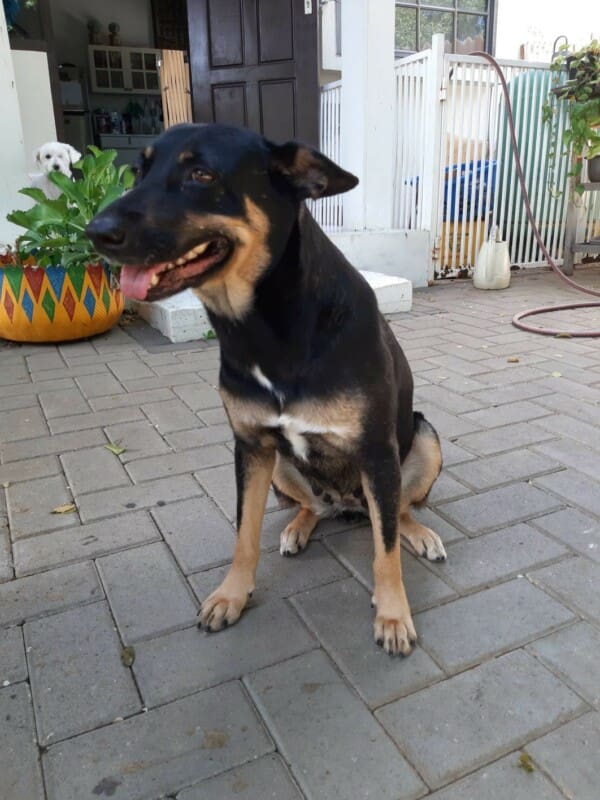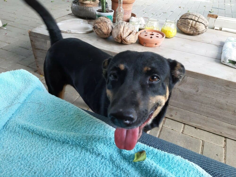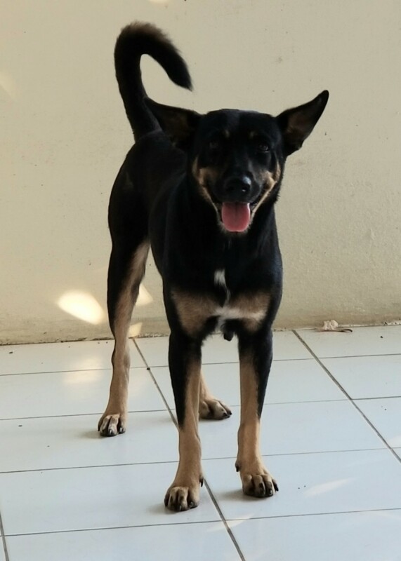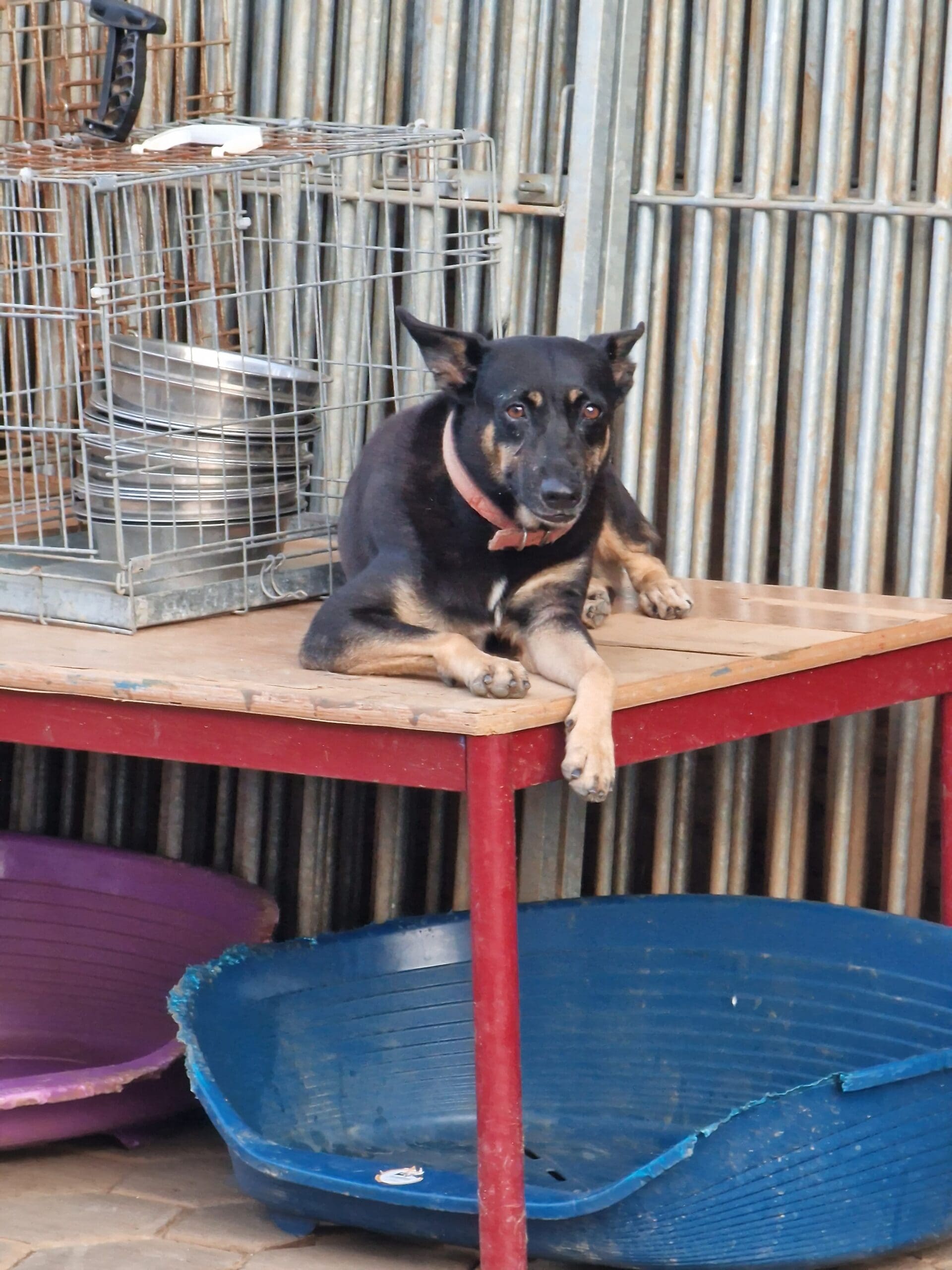 Bij het wegbrengen van twee hondjes naar luchthaven Hato op weg naar hun nieuwe thuis in Nederland, zagen we haar lopen. Met dikke buik, al waggelend tussen de terrasjes… Ik vroeg, “hey meid, ga je mee?” en Hanna liep eigenlijk zo mee, de auto in. Uiteraard is ze gelijk naar de dierenarts gegaan voor sterilisatie en daarna is ze opgevangen bij een lieve foster.
