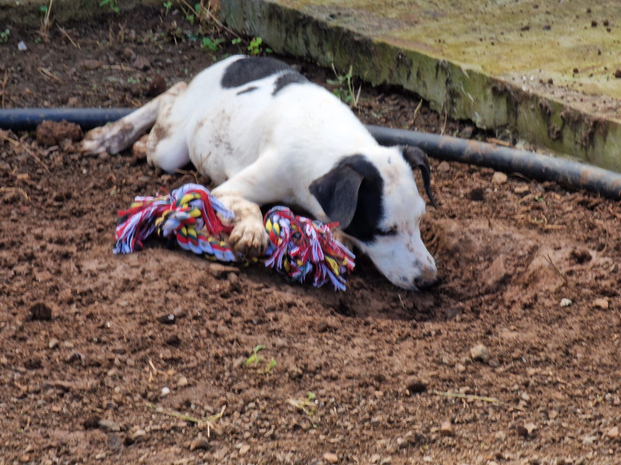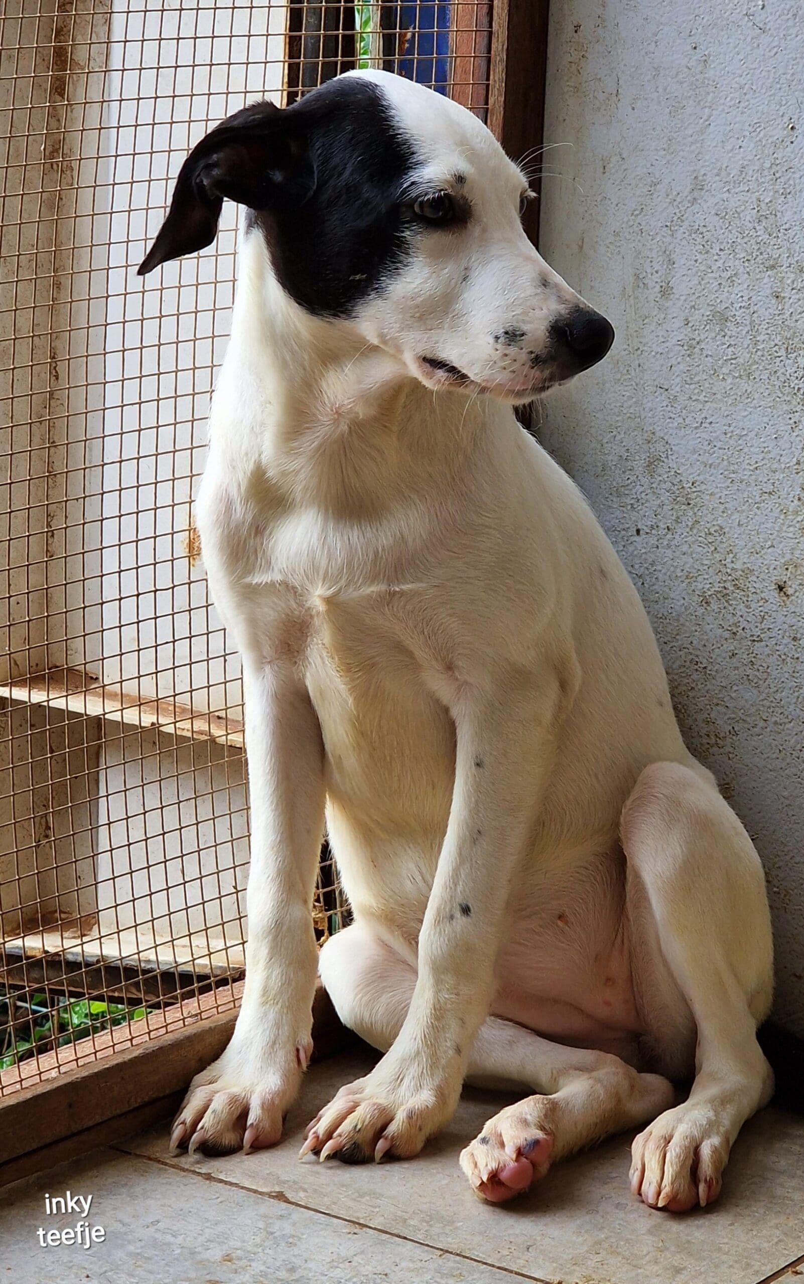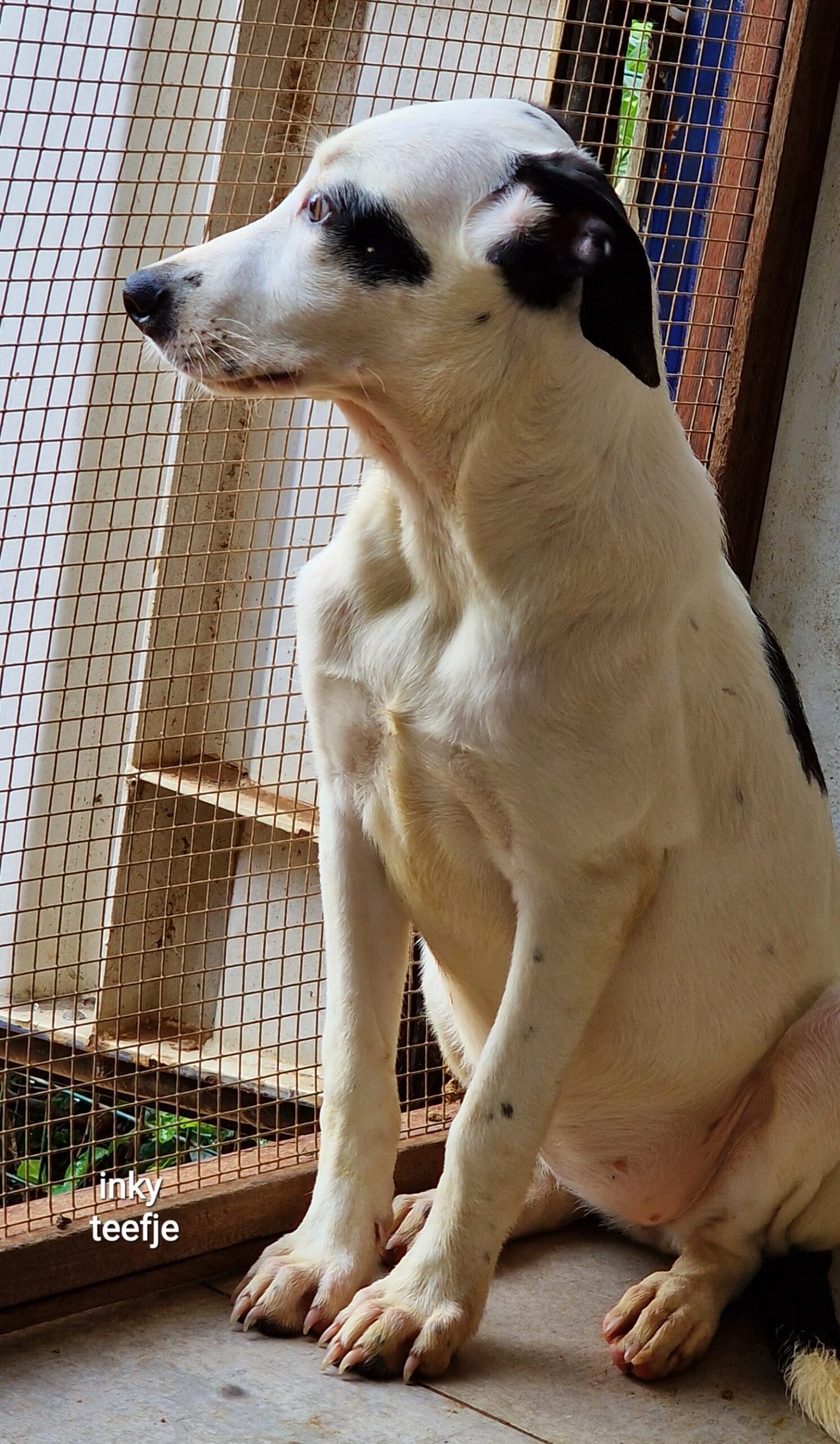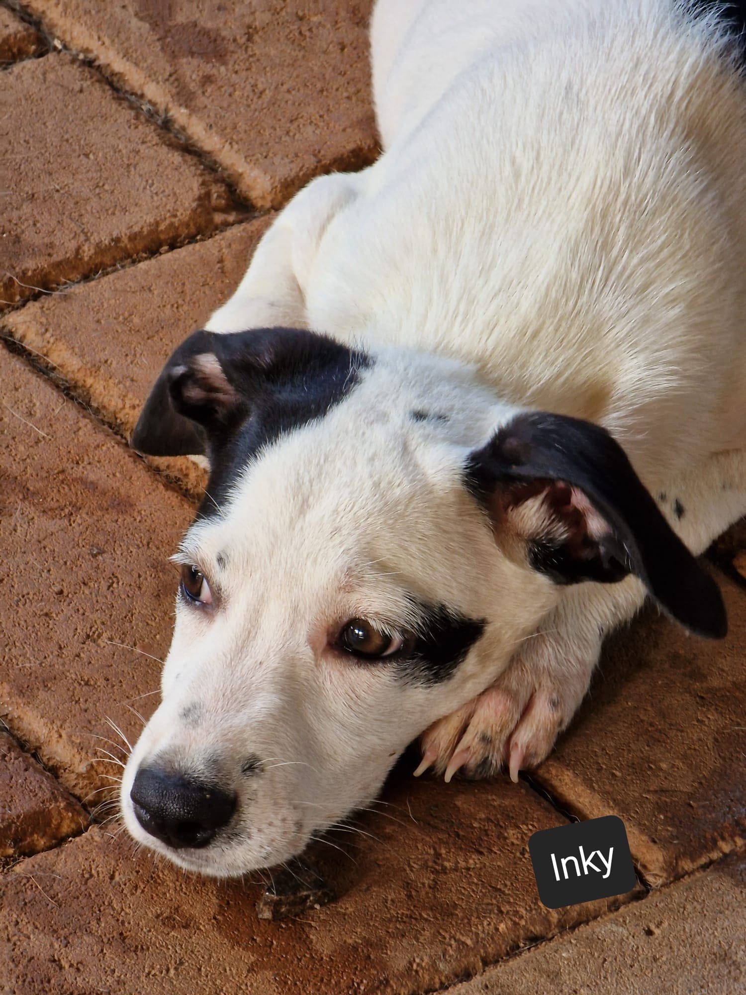 In een buurtje in de wijk Soto is de hondensituatie bar en boos. We hebben verschillende nestjes puppies ‘aangeleverd’ gekregen uit deze buurt en zijn toen begonnen met een sterilisatieronde. Dat liep aardig, tot de buurtbewoners niet meer wilden meewerken… helaas. Een van de laatste nesten uit deze buurt is ons aangeleverd in een boodschappentas… daar zaten 10 pups in opgestapeld. Te triest weer en ondanks dat we bommetje vol zaten hebben we ze naar binnen gehaald. Uiteindelijk bleken het 11 pups. Laatste pup zijn we gaan ophalen. Helaas was moederhond niet te vangen. We hebben dit nest de ‘Soto 10’ genoemd (eigenlijk 11…) en hebben er een vrolijke twist aangegeven door ze namen te geven van de ‘Looney Tunes’; Daffy, Pepe, Woody, Hector, Inky, Speedy, Elmer, Sniffle, Bugs, Tweety & Ducci. Vier pups zijn geadopteerd maar de zeven anderen zijn ook op super leuk en op zoek naar een eigen huisje, Inky is daar een van.