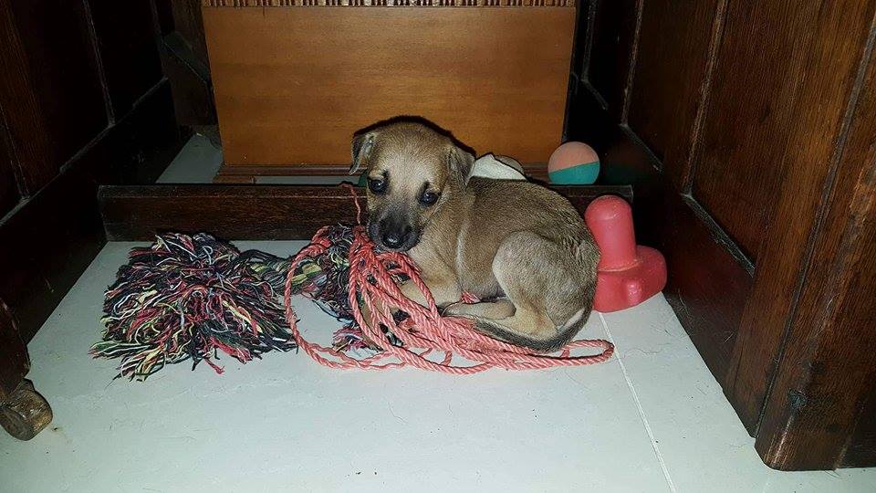 Gevonden in de tuin, was het bericht. We kunnen hem niet houden………………. Kleine Jerzey nog geen 7 weken oud. Hoe ben je daar terecht gekomen?