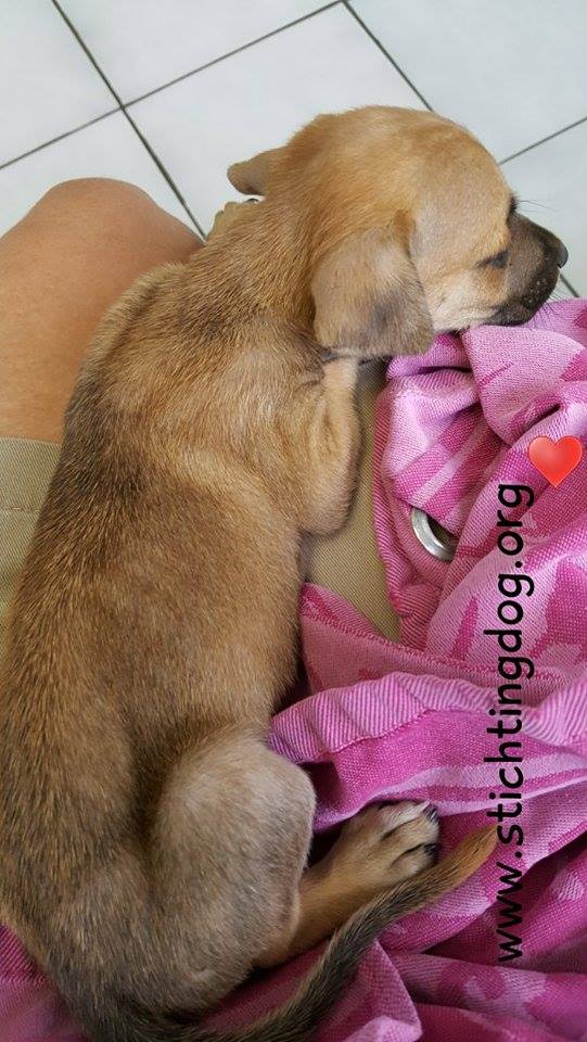 Hij mocht meteen bij Diny logeren die elke dag met hem naar de dierenarts kon.