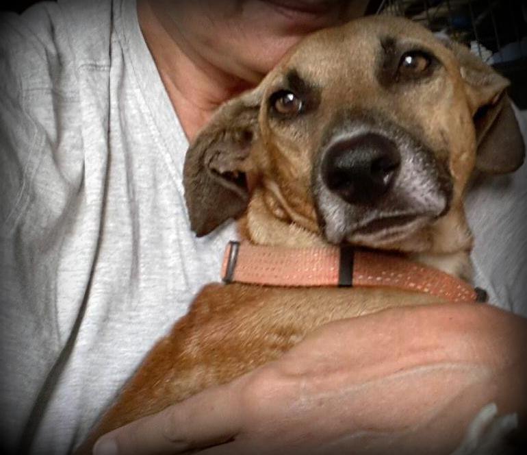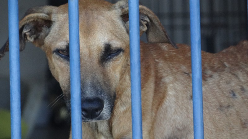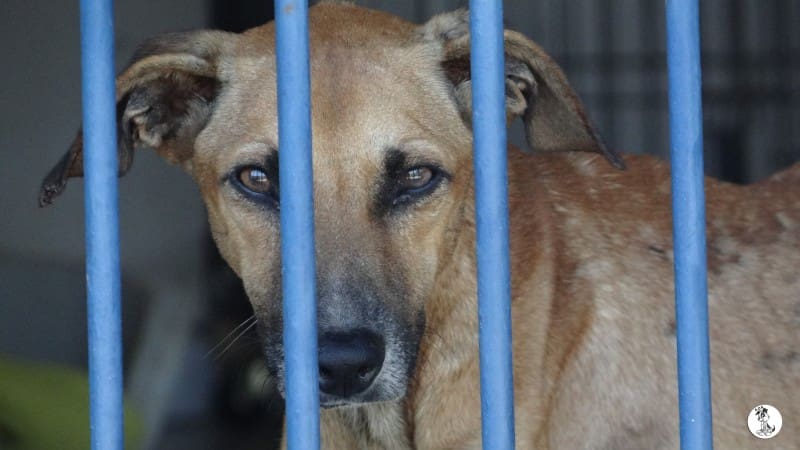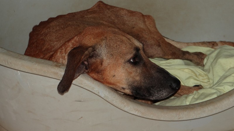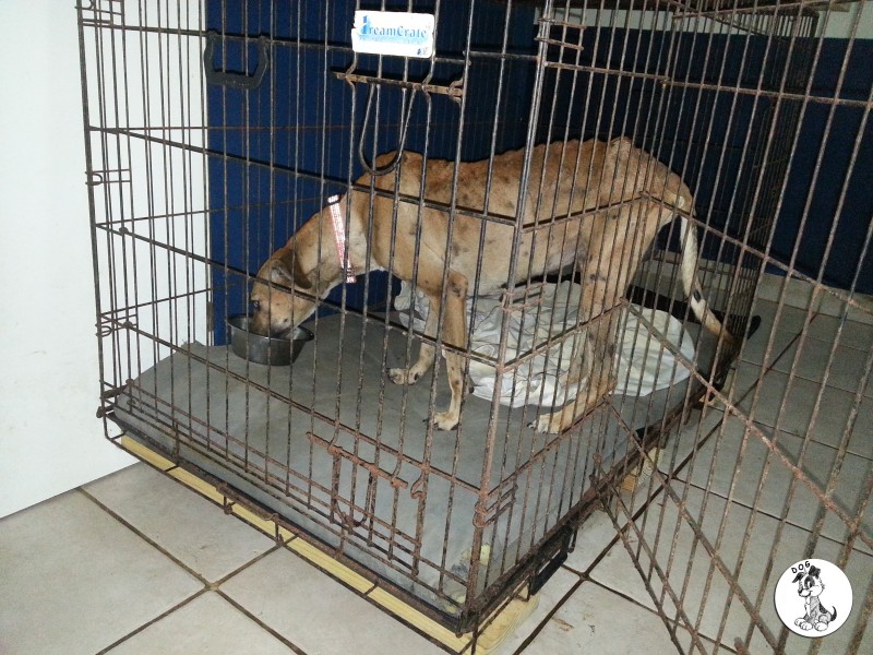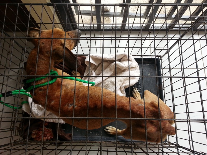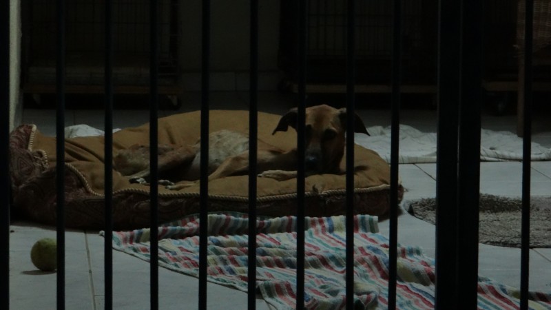 Maar nu zit hij in de grote kennel, laat zich op zijn buik aaien en eet en drinkt.