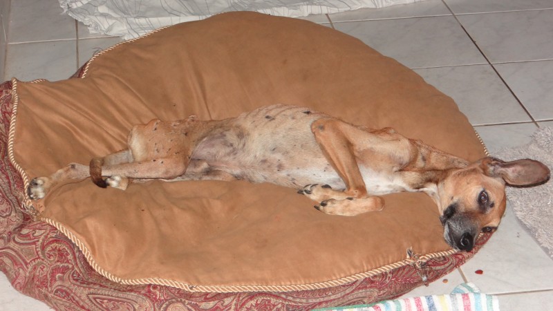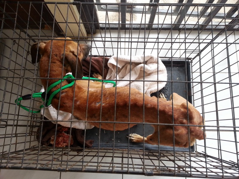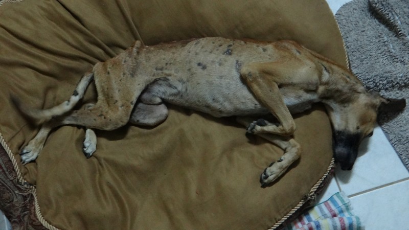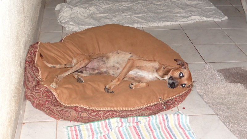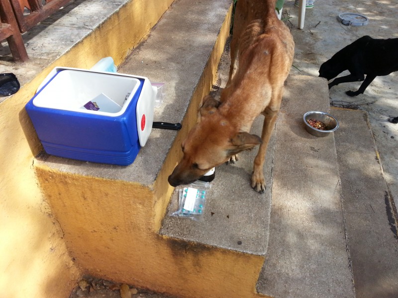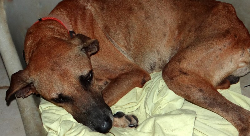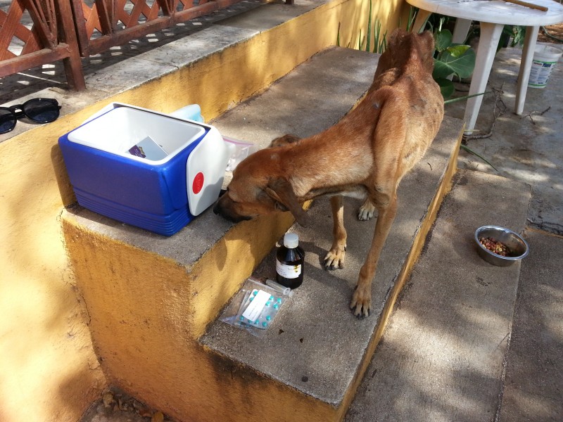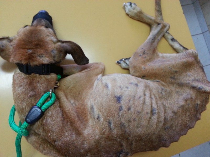 We hebben Juan naar de dierenarts gebracht en gelukkig viel het mee: Hij heeft wel zwaar karpattenziekte, bloedarmoede dan dus vanzelf en veeeeel luizen en vlooien en haak- en spoelwormen. Maar dat kan allemaal behandeld worden. We gaan begeleiden in het geven van de medicijnen en monitoren of hij beter gaat. De eigenaars zijn wel ‘willing’ dus we geven dat een kans. Mocht het niet gaan, dan kunnen we altijd nog een andere plek zoeken. Maar educatie is ook erg belangrijk. Hij is ondanks alles toch vrij levendig en waaks! Waarschijnlijk een jaar of 4. Hij heeft netjes een manicure gehad. Met natuurlijk heel veel dank aan dokter Dolls en dokter Quaedvlieg.